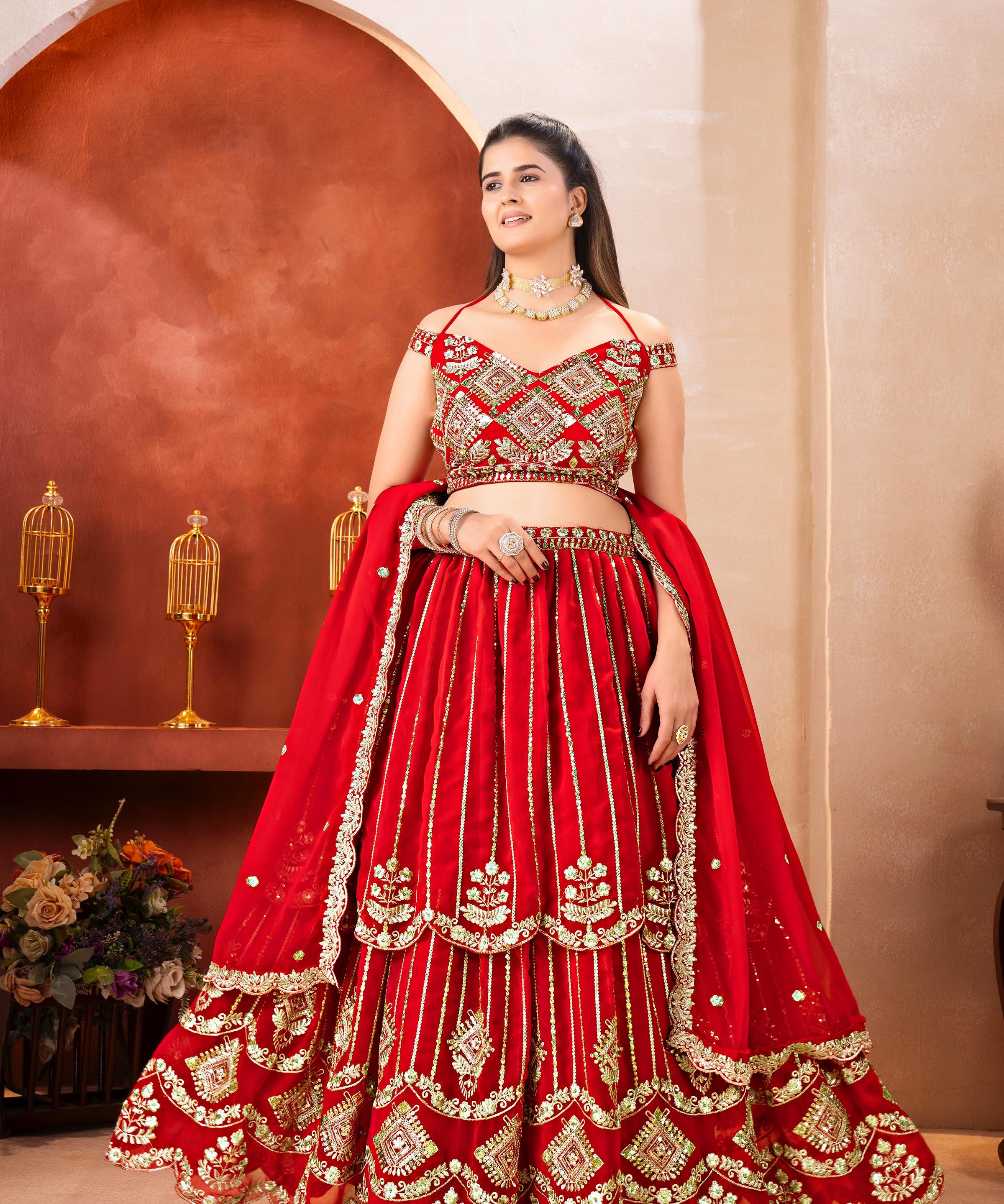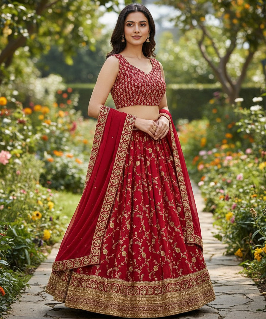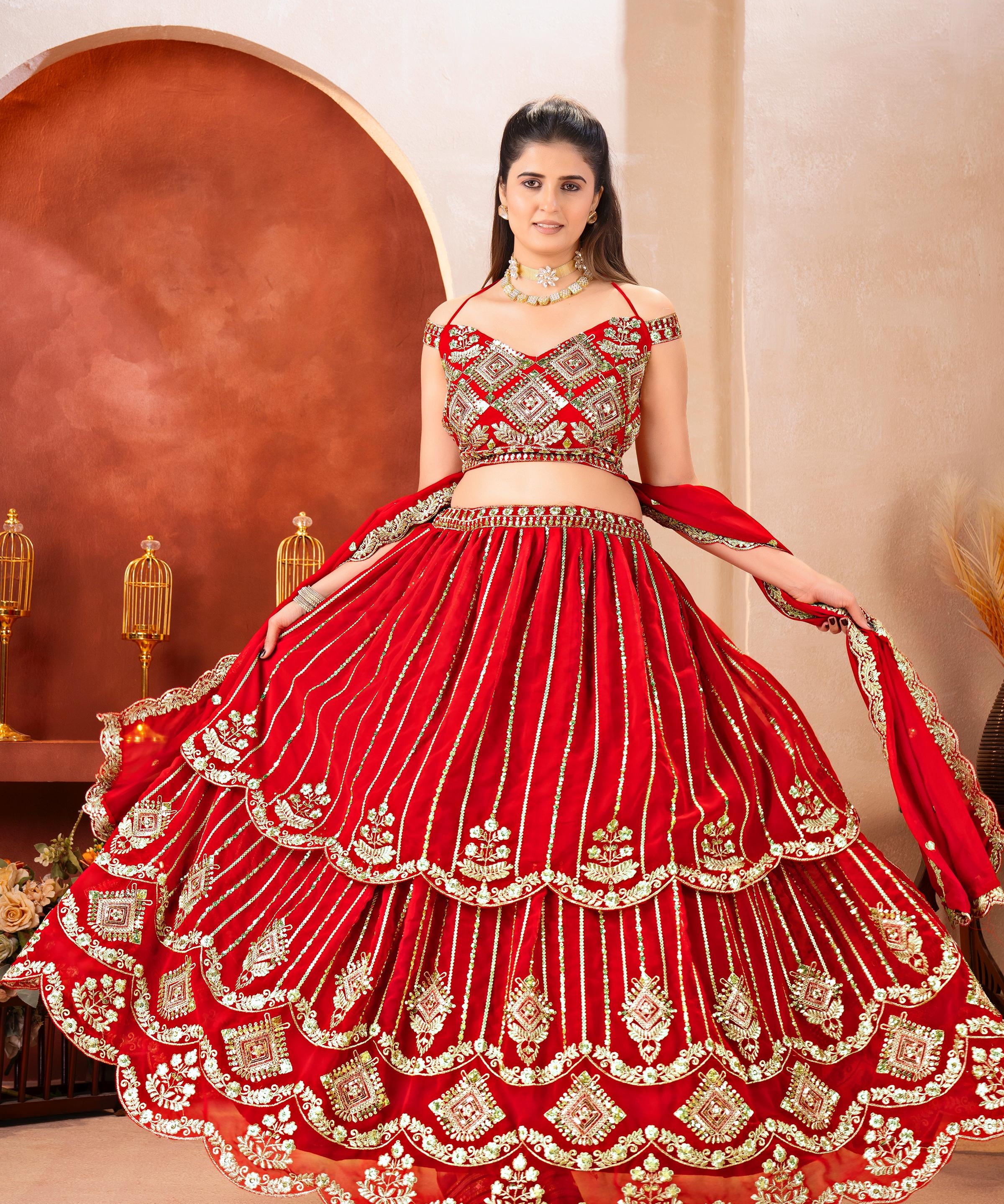 Stunning Red Georgette Lehenga