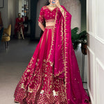 Where rich Natural Silk meets golden embroidery—this lehenga shines with its detailed craftsmanship and vibrant pink glow 💖