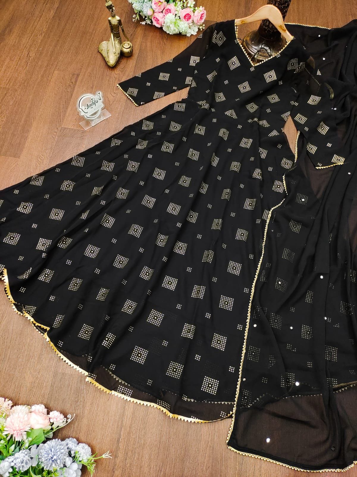 Featuring Solid fox Georgette Maxi Dress With Nazreen dupatta with mirror 🪞 work Pair It Finely combination of gold 🌺 print! This Is Made For Simple Casual Dressing With Subtle Detailing! Hurry, Get Yours Now! 😍 ♥️