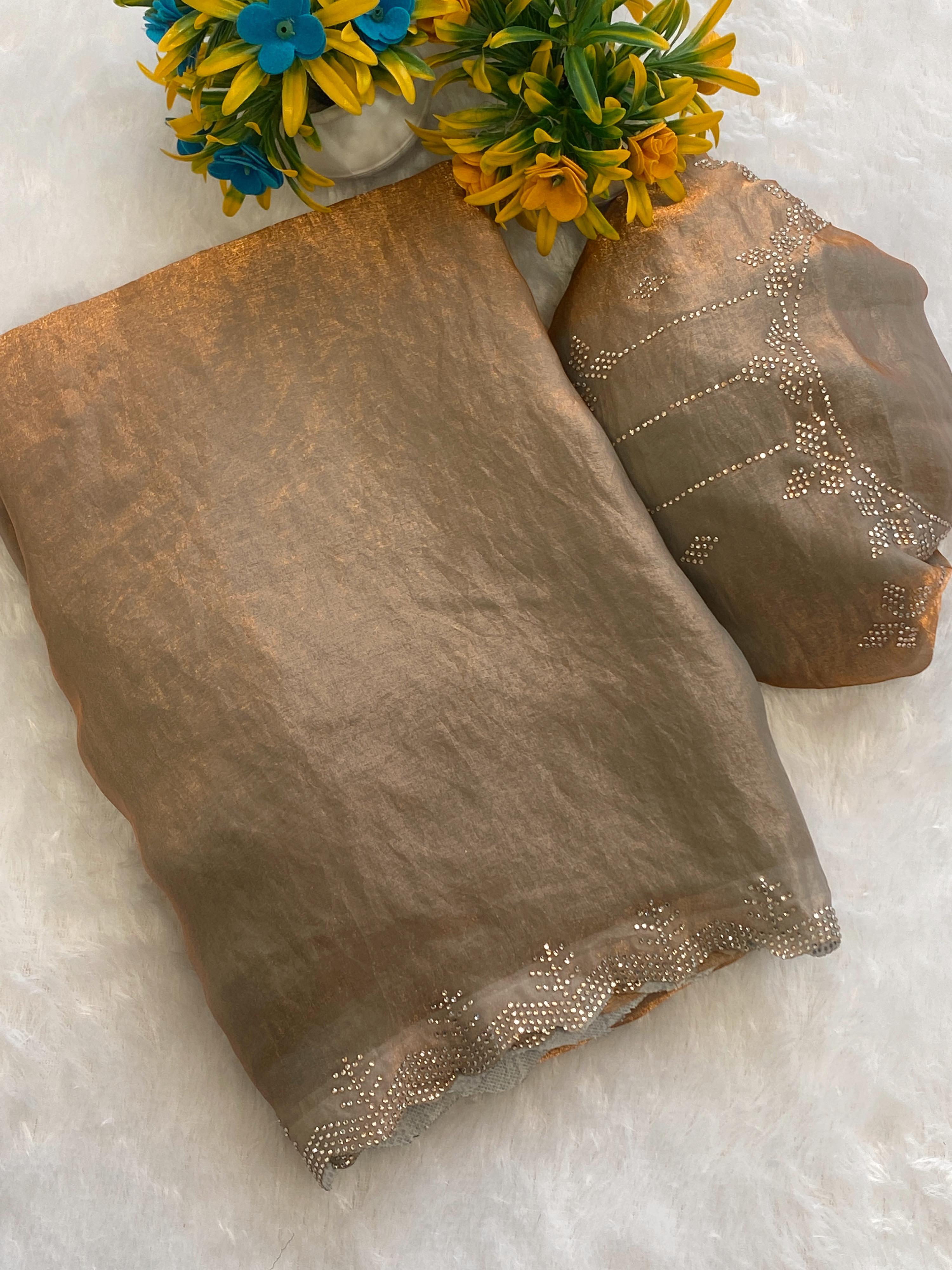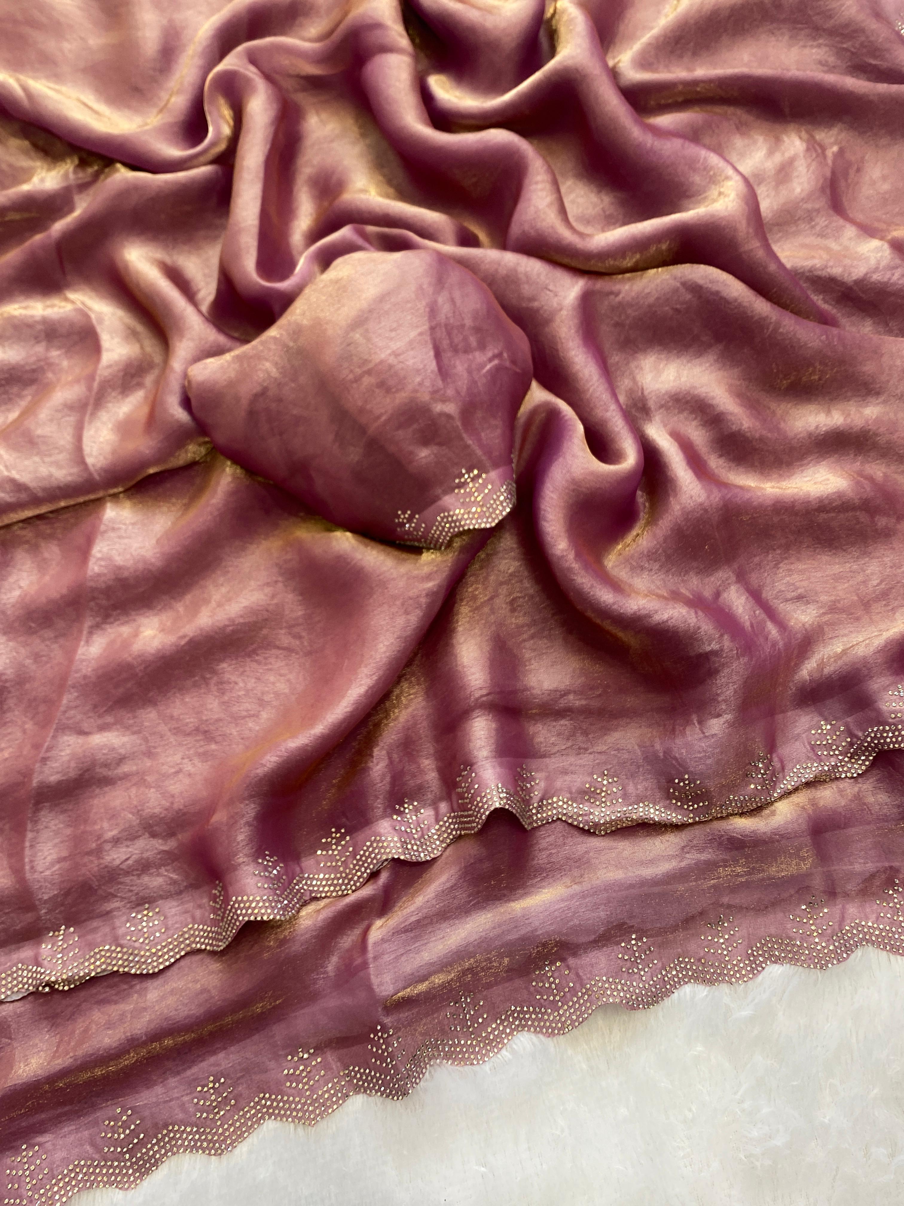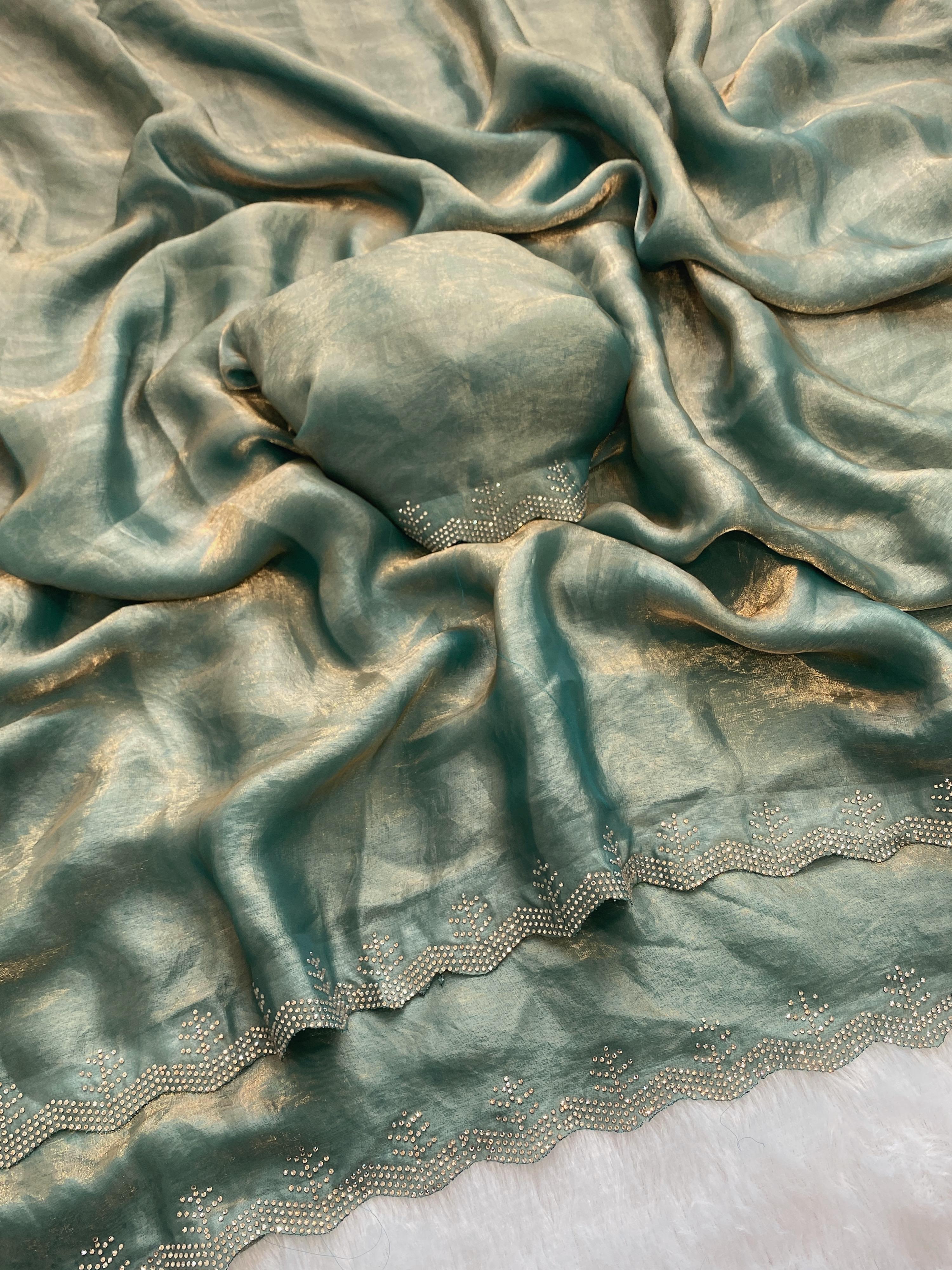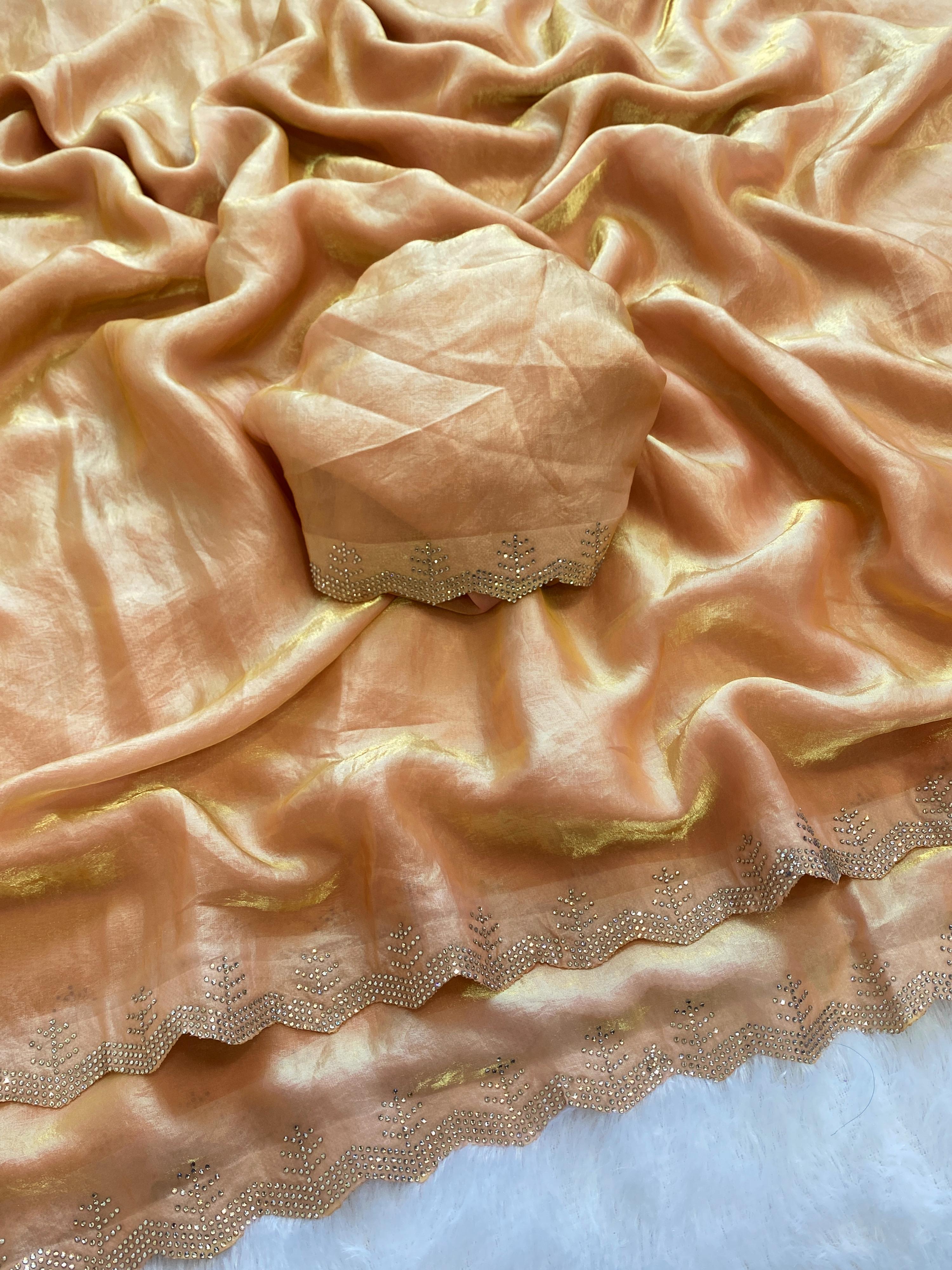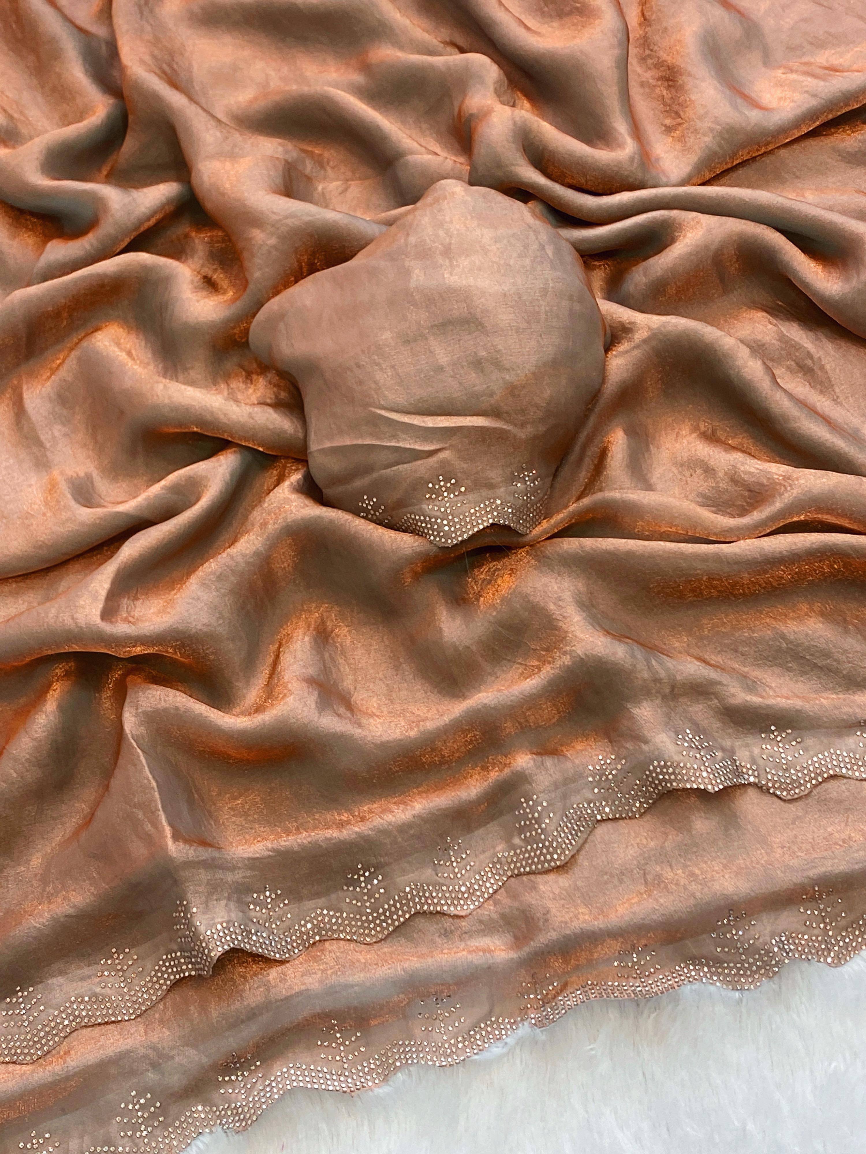 Beautiful fandy satin silk saree with zarkhad conecpt in diamond border.