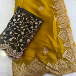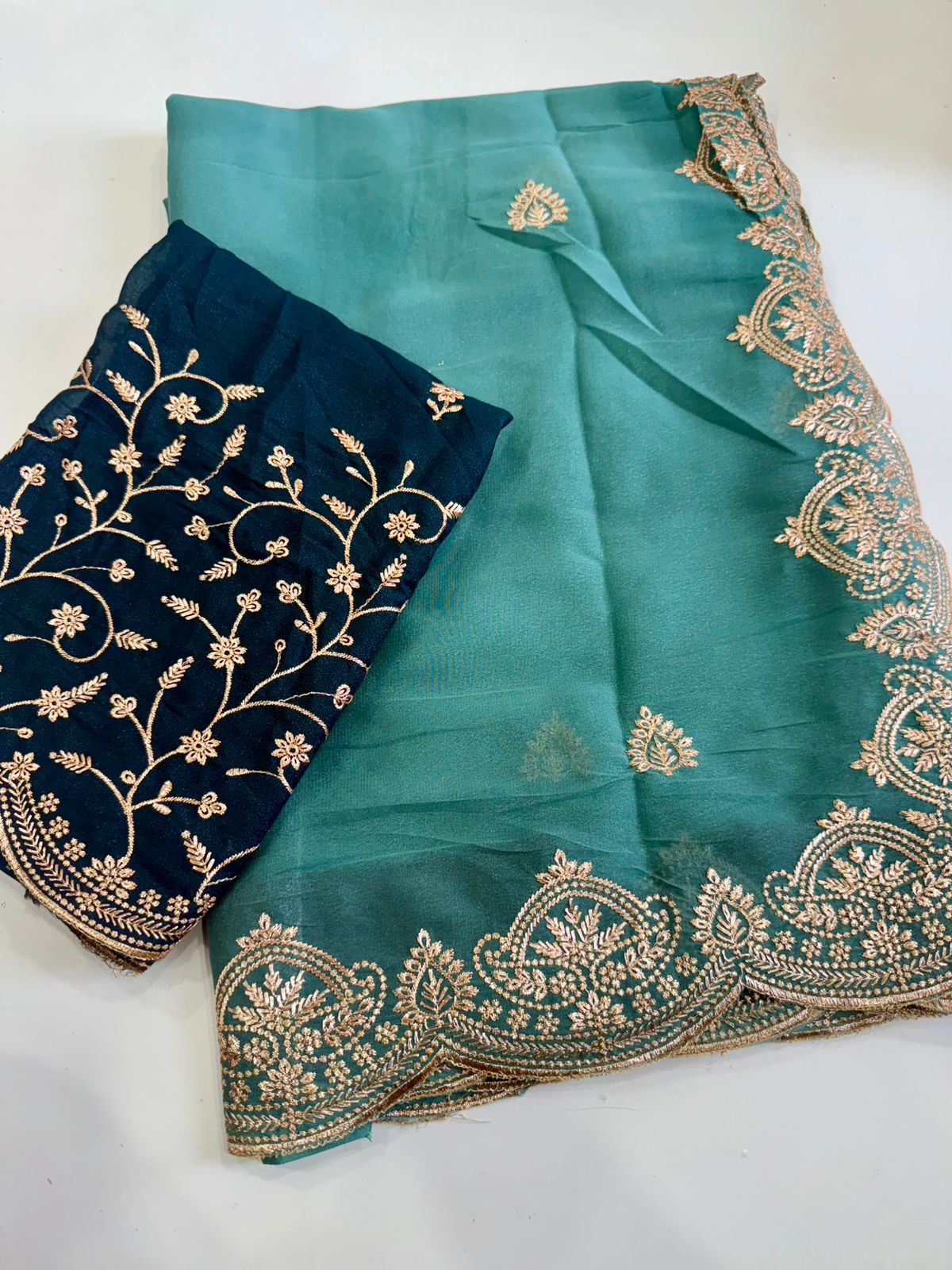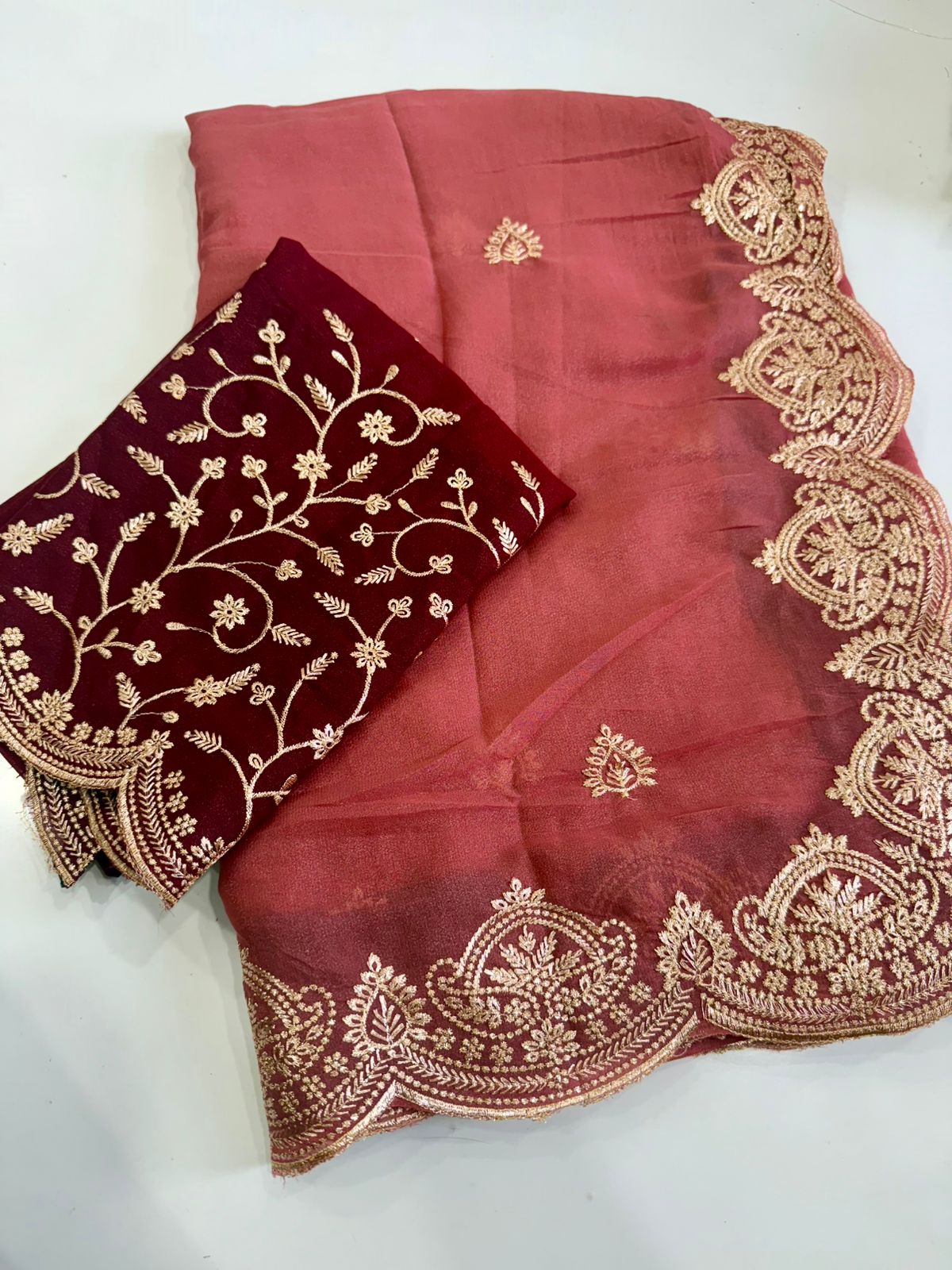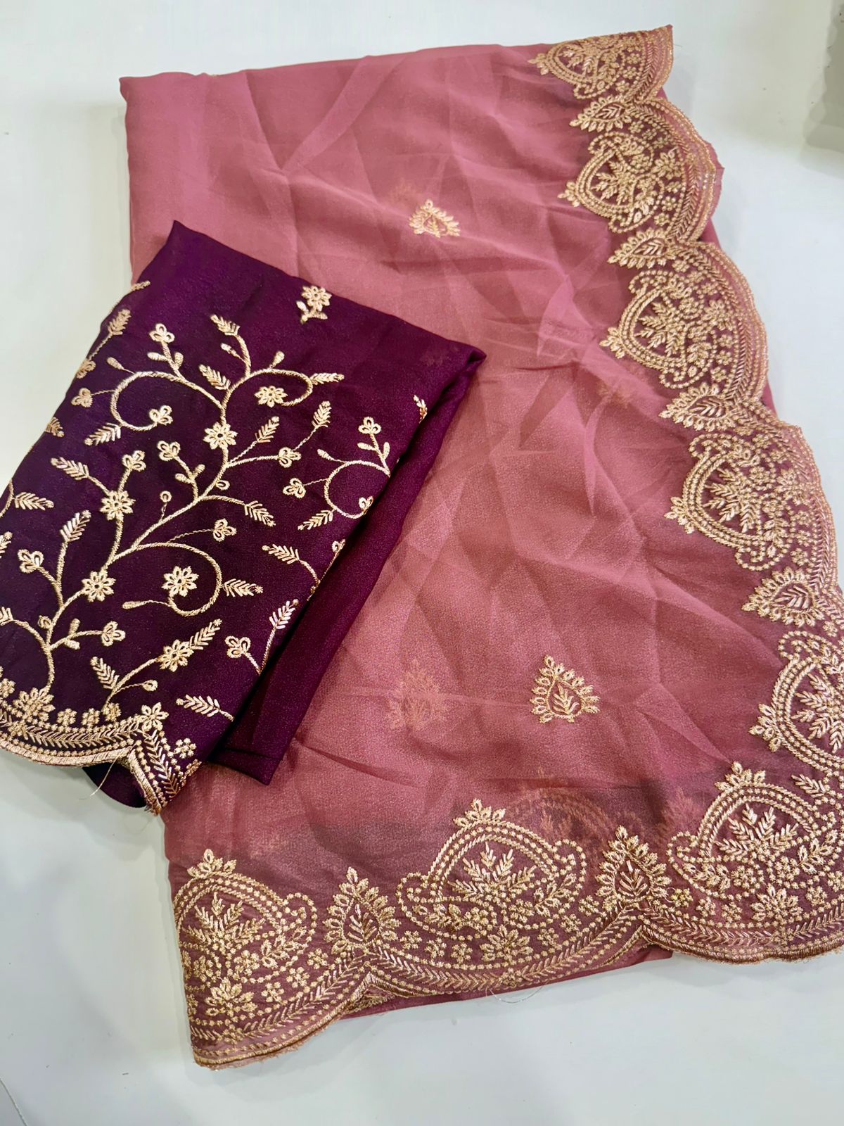 Star Georgette Multi Emrodairy Work Saree With Running Contrast Blouse
