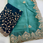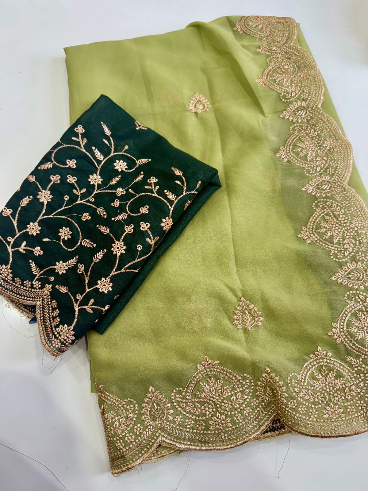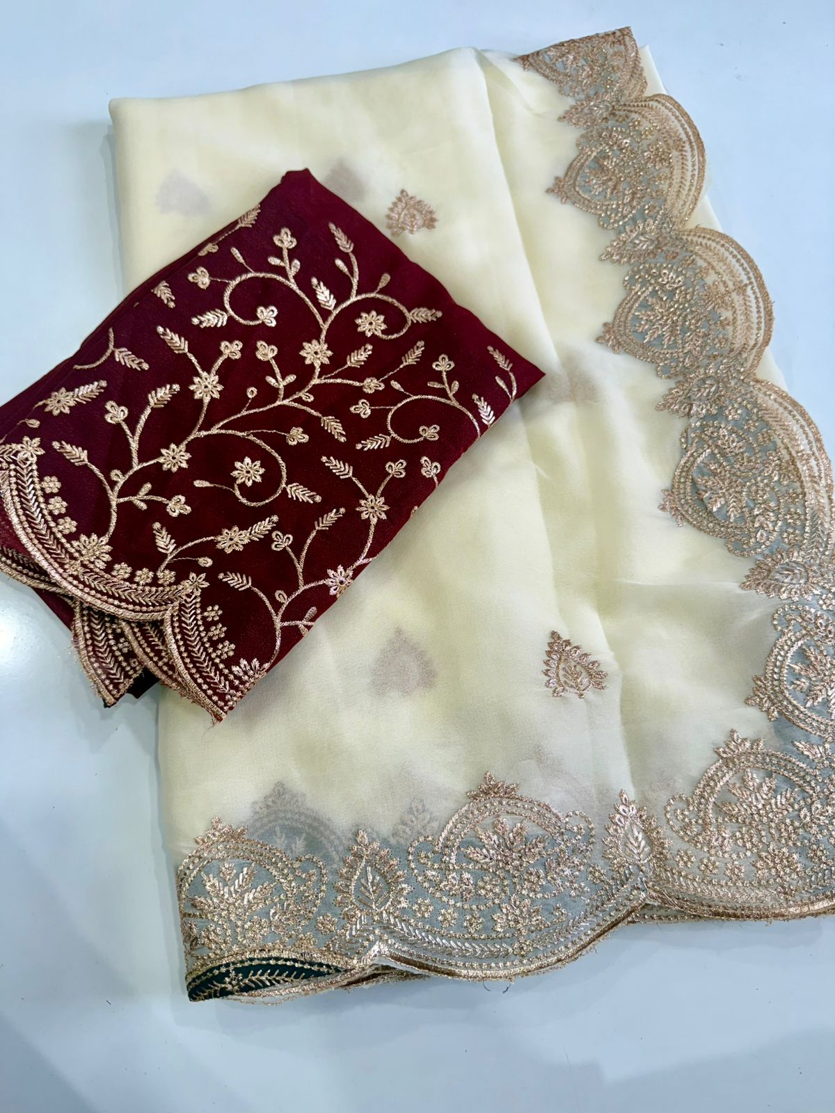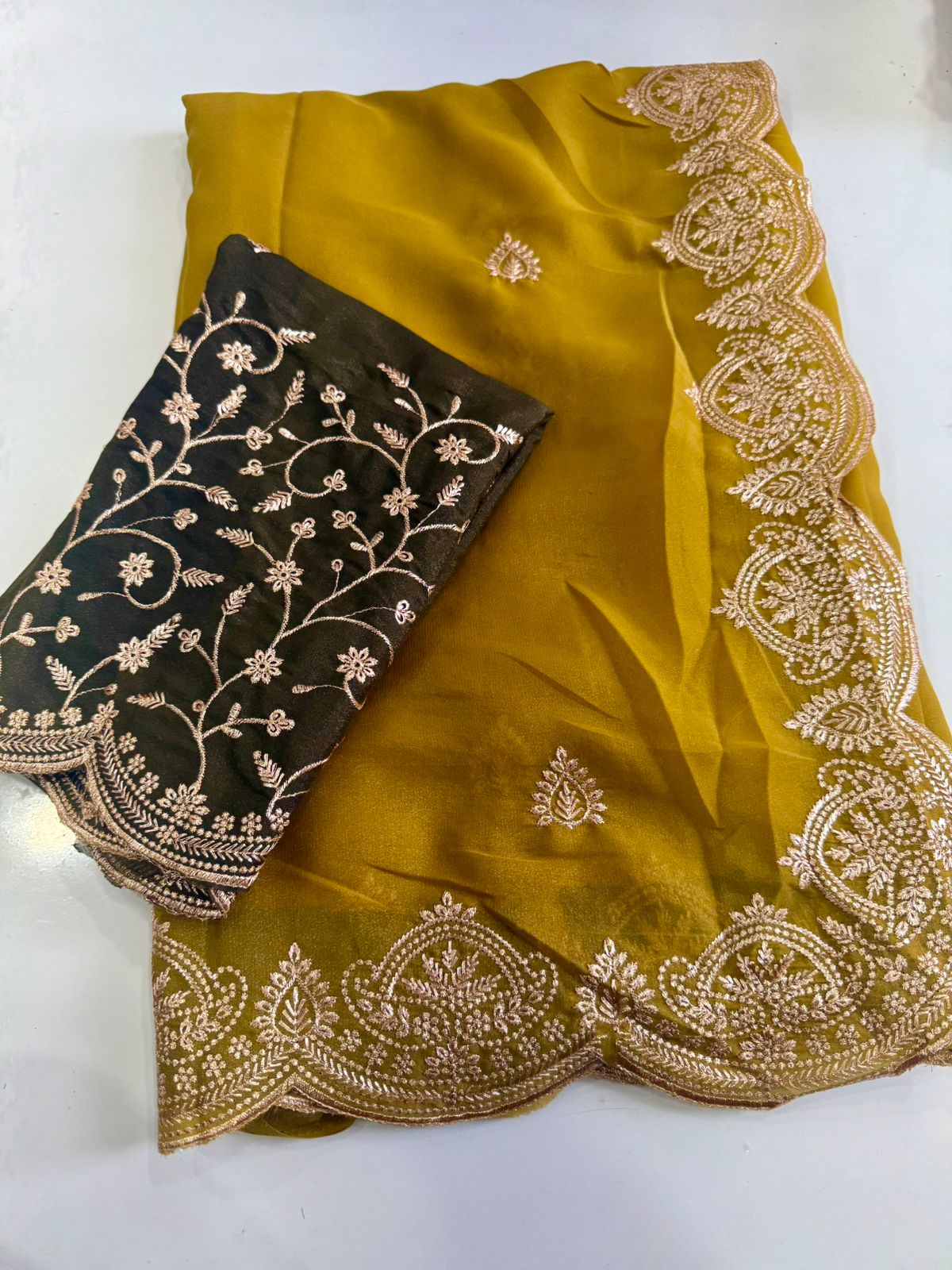 Star Georgette Multi Emrodairy Work Saree With Running Contrast Blouse