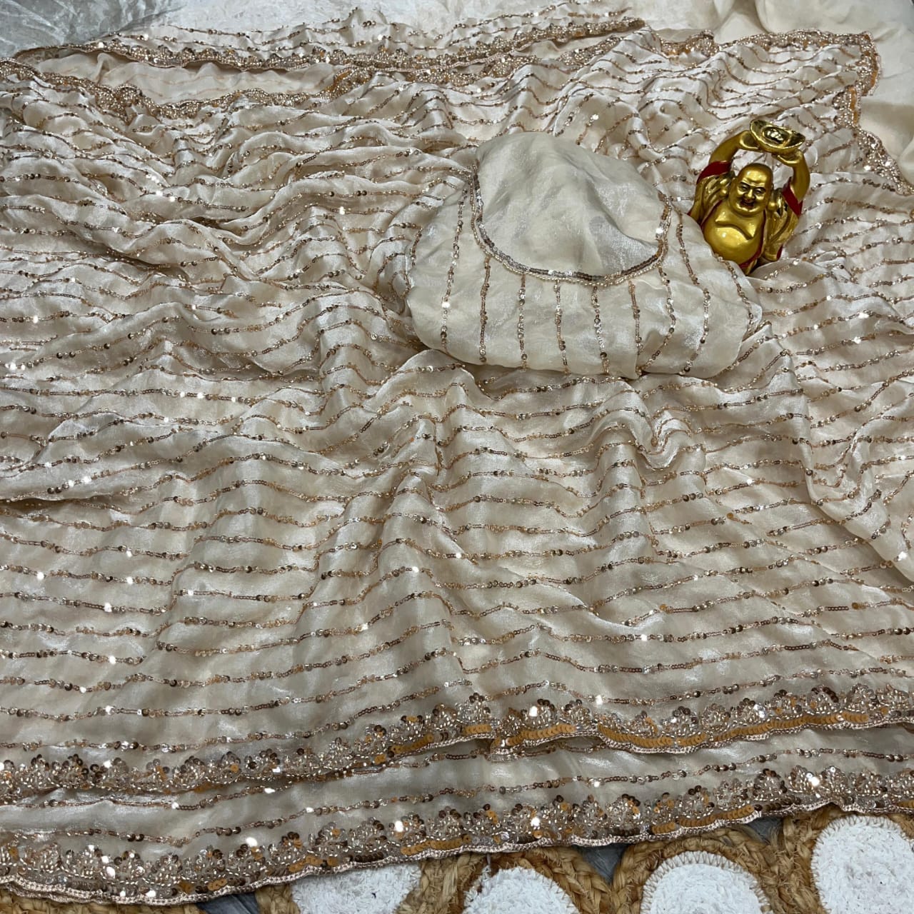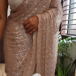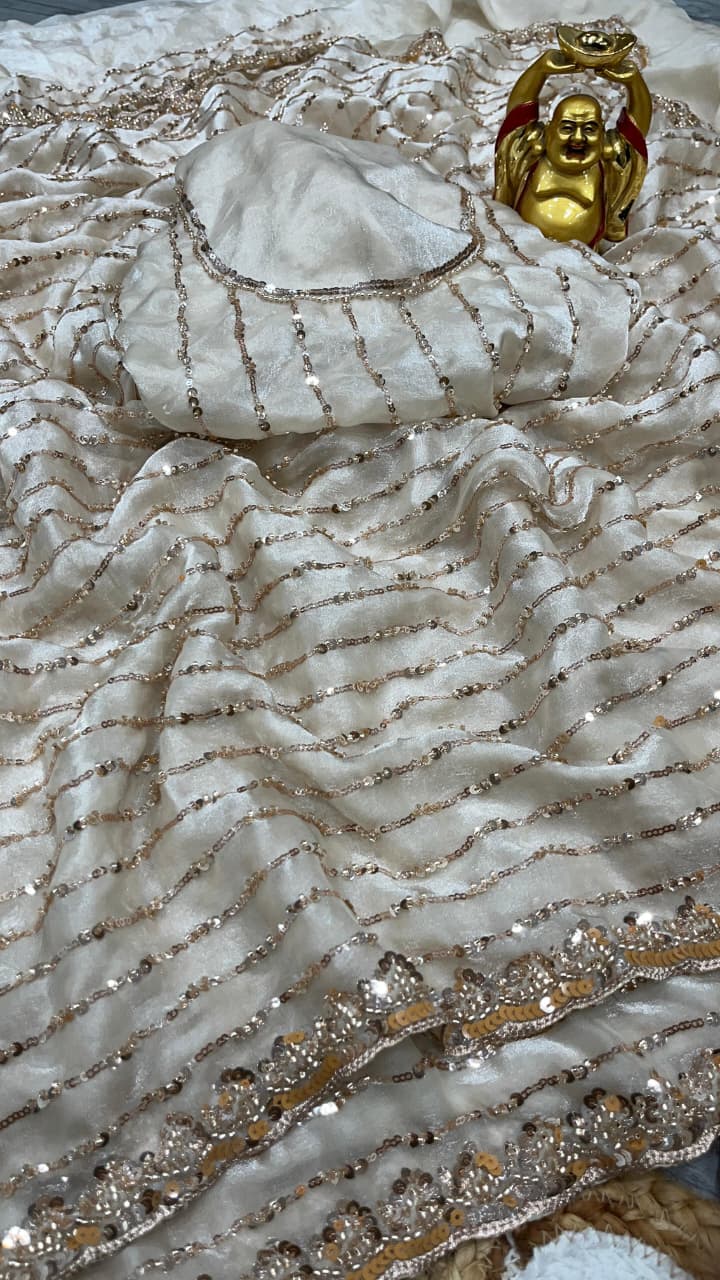 *On pure space silk sarees in velvet shine adorned with sequence and cutdana delicate handwork*