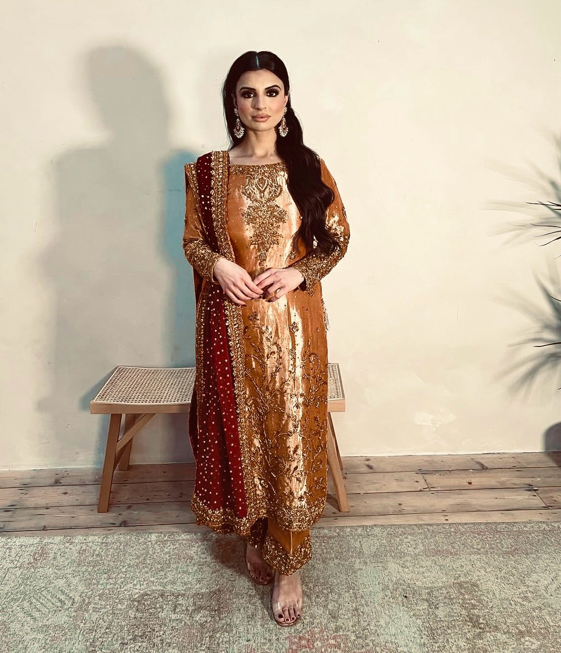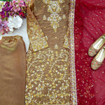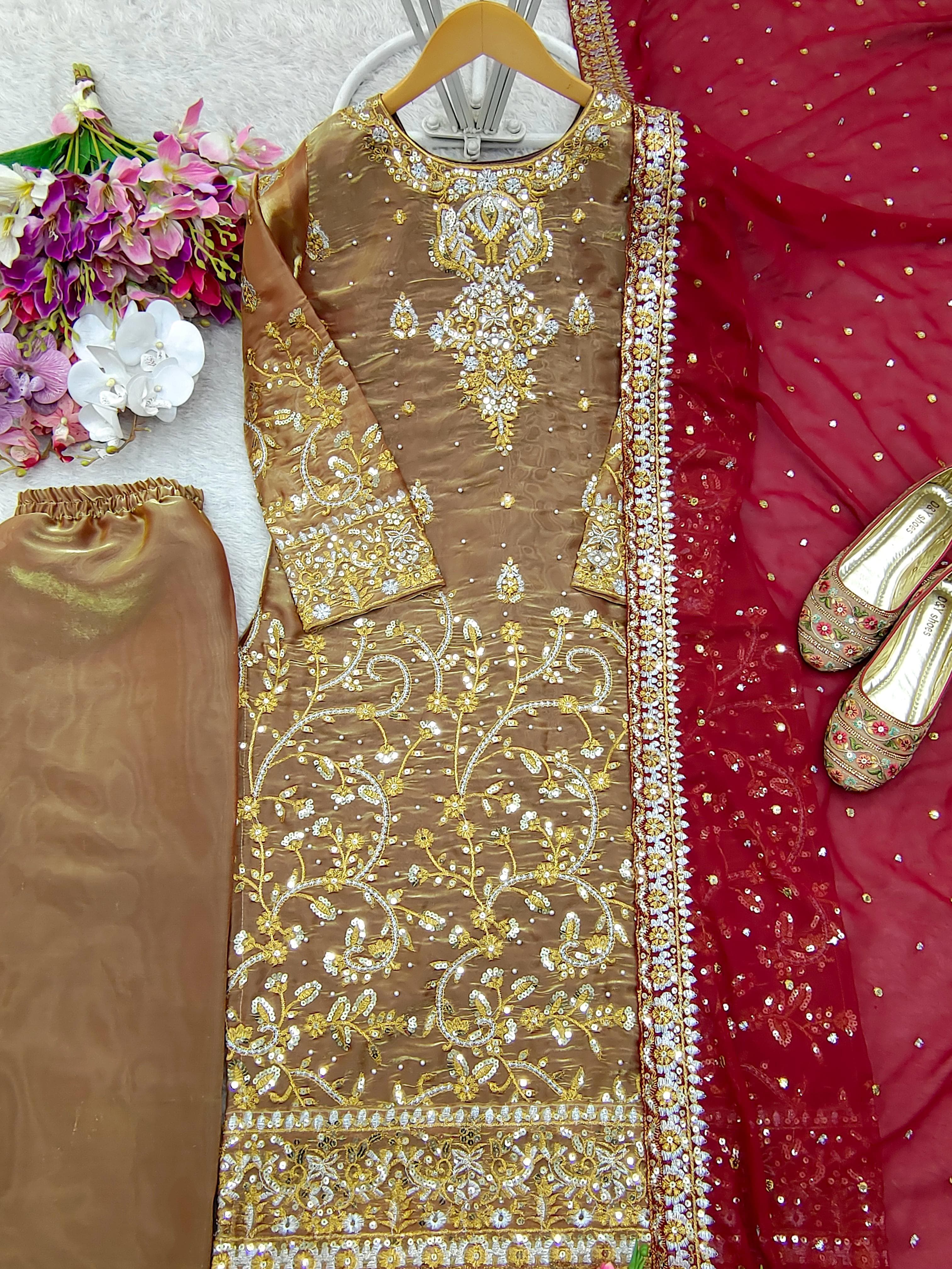 Top Fabric  : Pure Zimmy-Chu Silk With Heavy Embroidery 5mm Sequence Work With Moti Work With Full-Sleeves