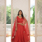 πŸ‘‰πŸ» Fabric & Work :- Faux tabby With Sequins And Embroidered work and Arco-Cut Work.