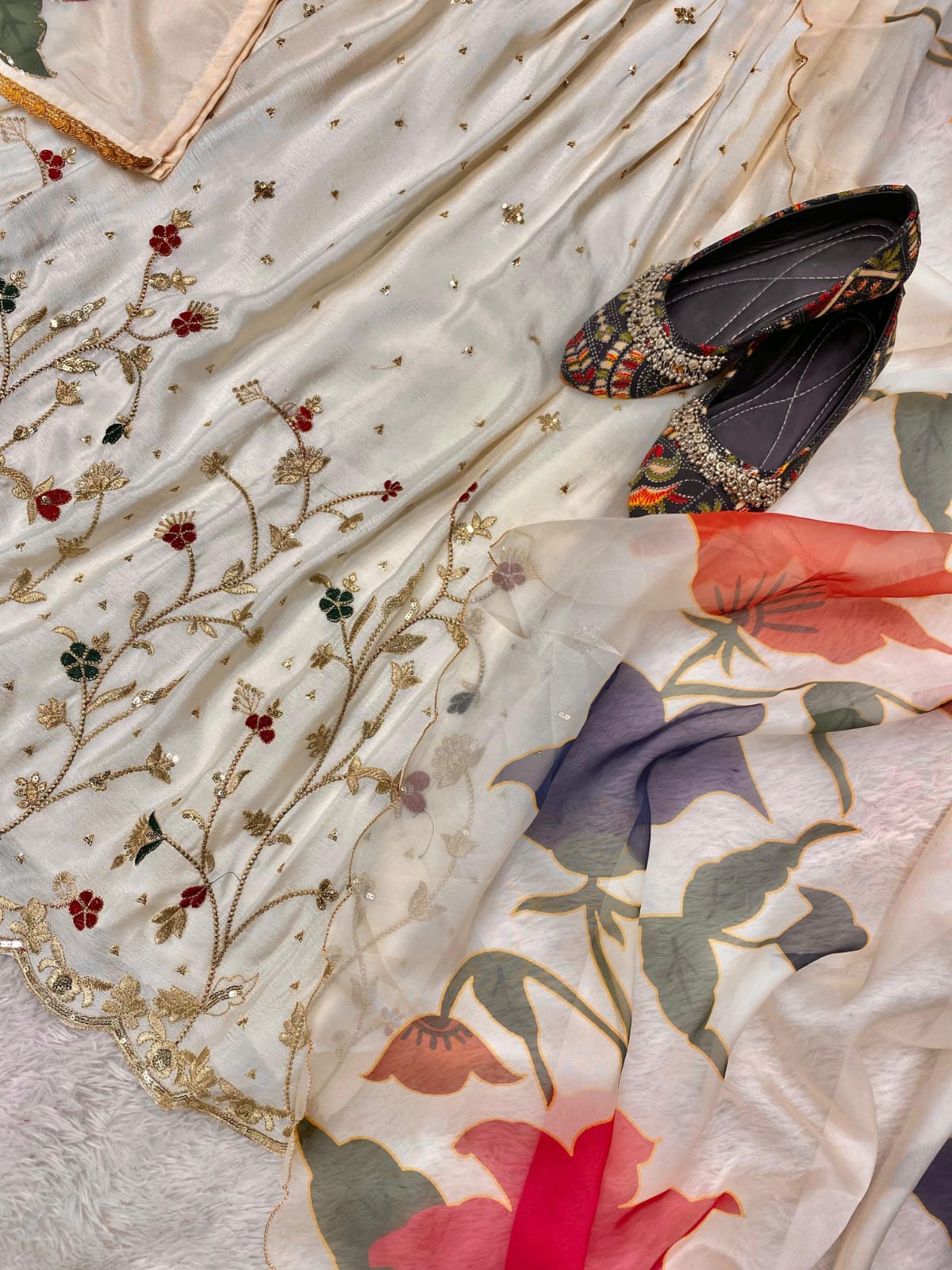 # DUPATTA: ORGANZA WITH DIGITAL PRINT AND ARCA HEAVY BORDER WORK