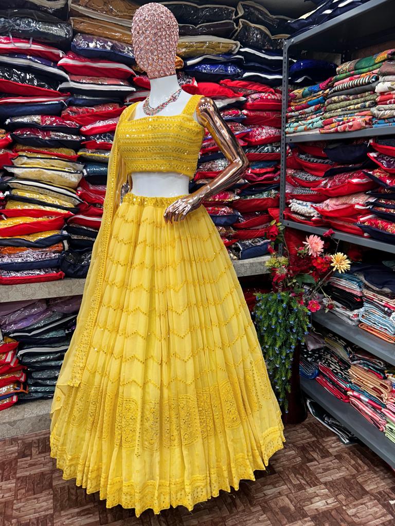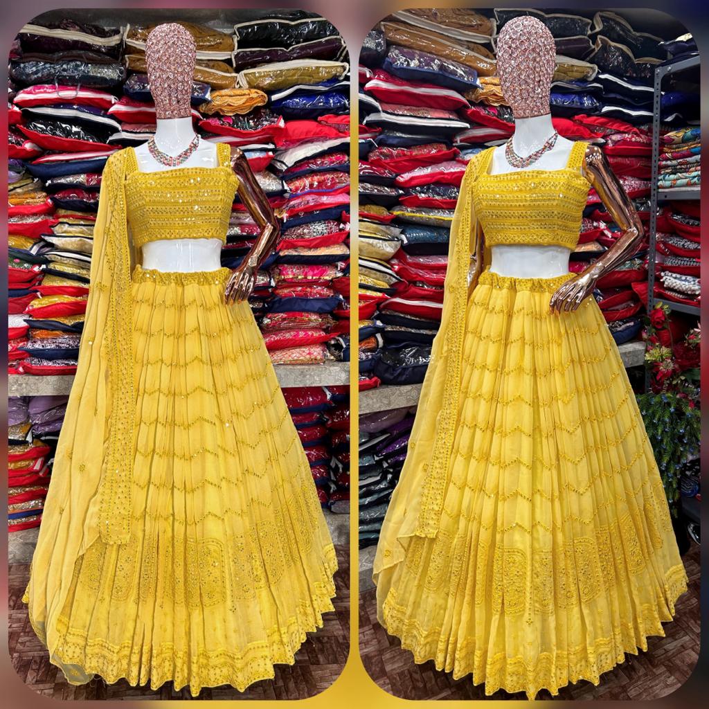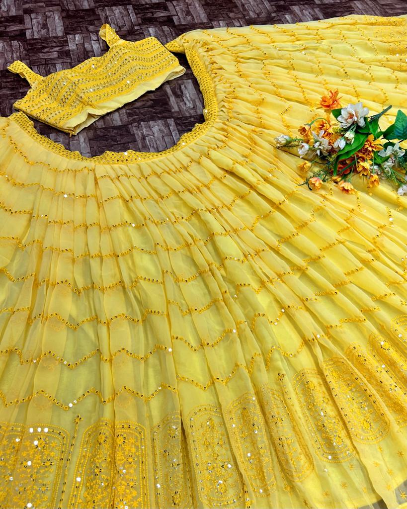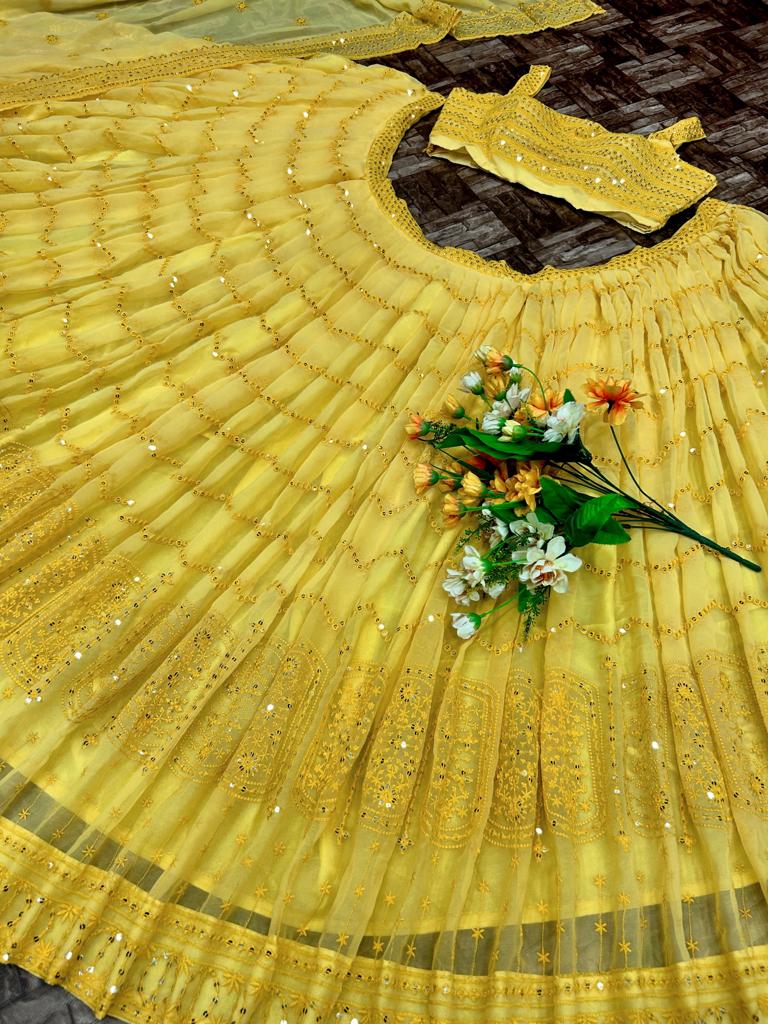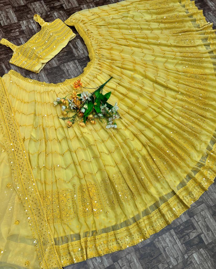 FABRIC : Faux Gorgette Silk fabric With Micro silk inner & Semi stiched type lehengha with canvas patta 😍