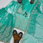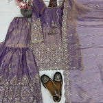 DESIGNER HEAVY NC SATIN EMBROIDERED SEQUENCE WORK WITH FANCY TOP SHARARA DUPATTA SET
