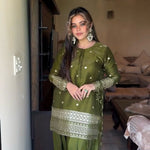 Looking for this same colour beautiful Designer Suit on Japan Satin Silk febric with Inner and Sequnce work and Dhoti on also Japan Satin Silk Febric.