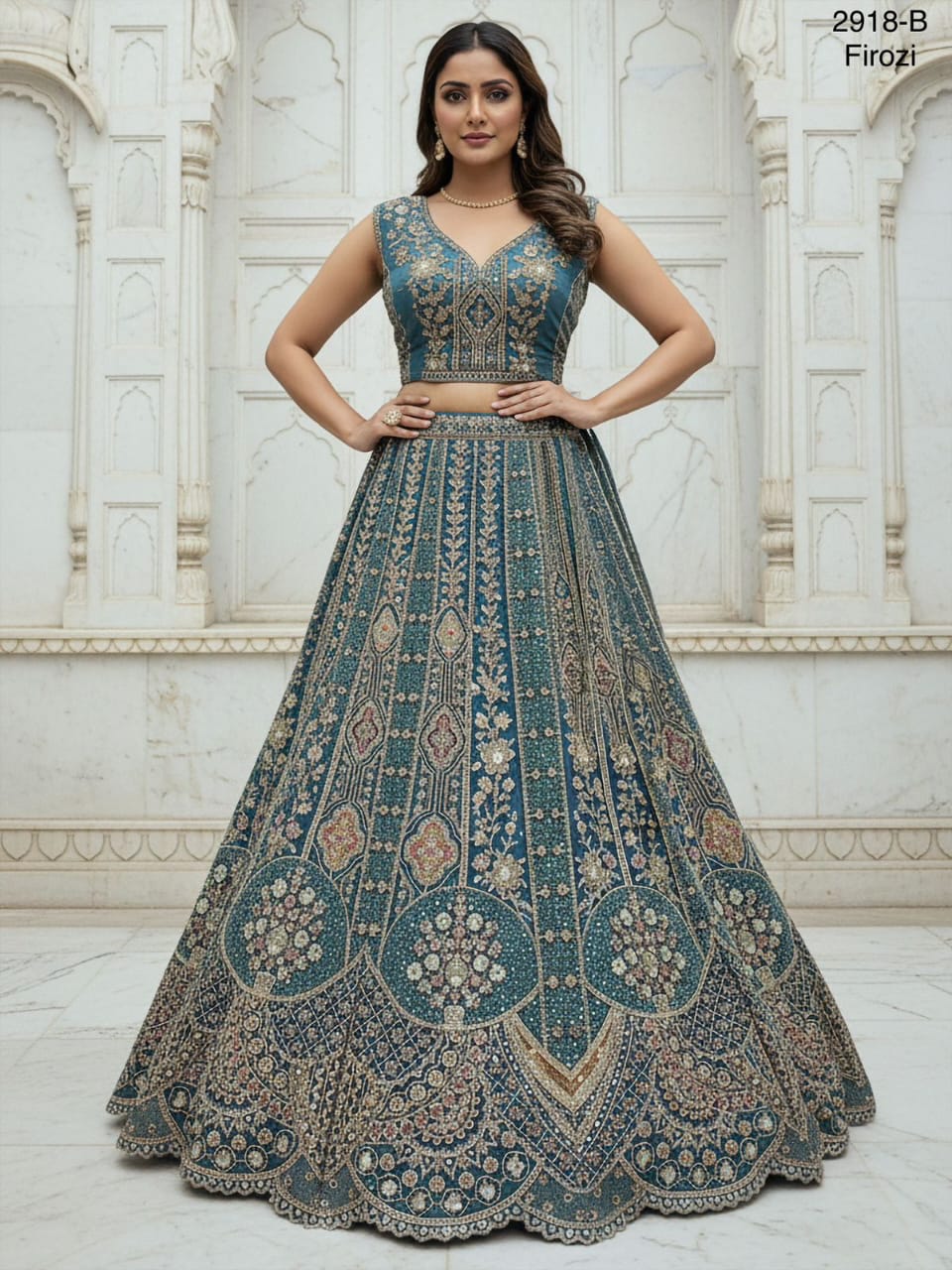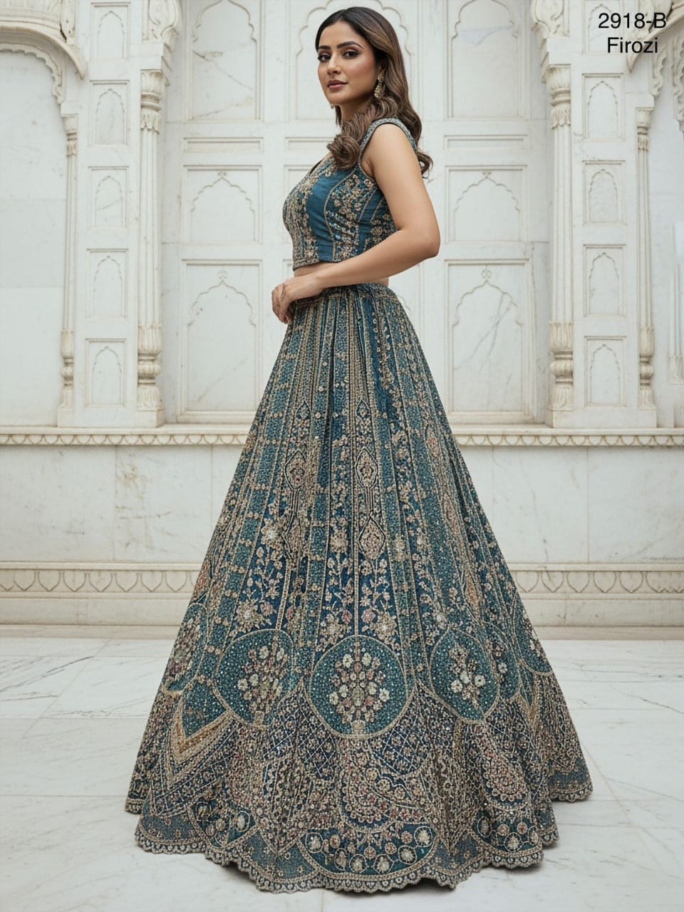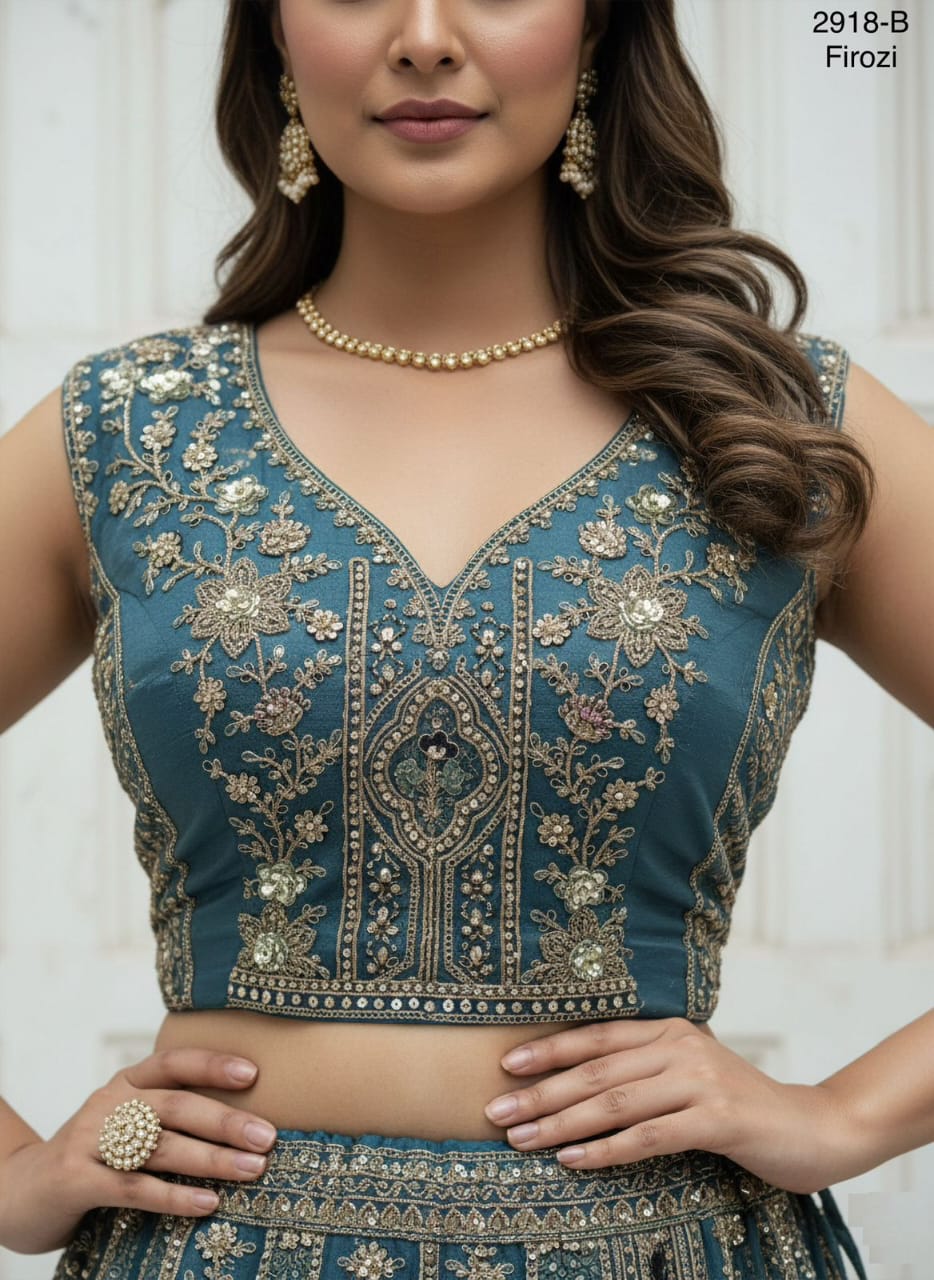 Metalic Embroidery on Vibrant Color Designer Partywear Lehengacholi