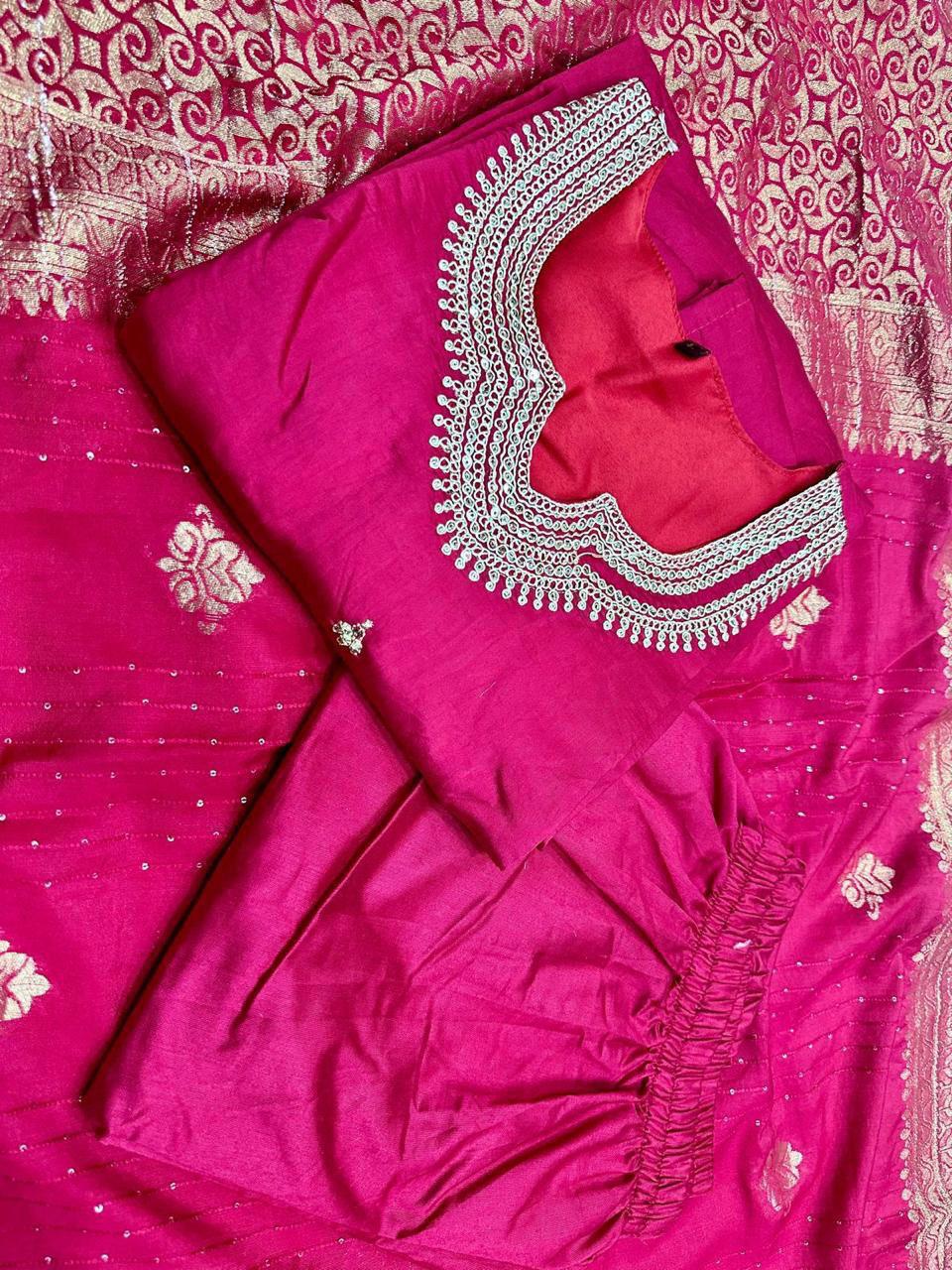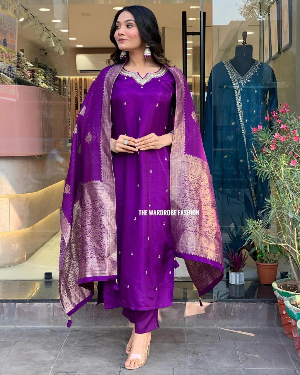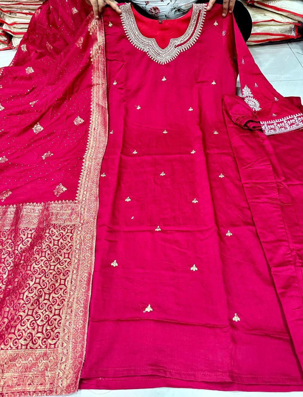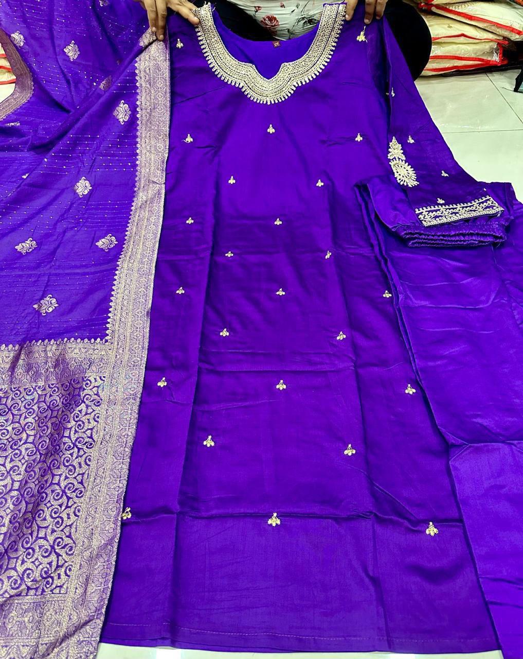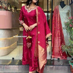 💃🏻*Presenting Beautiful Heavy quality Banana Silk Fabric designer festive wear kurti pant and duppta   with zari and Jacquard work with lining
