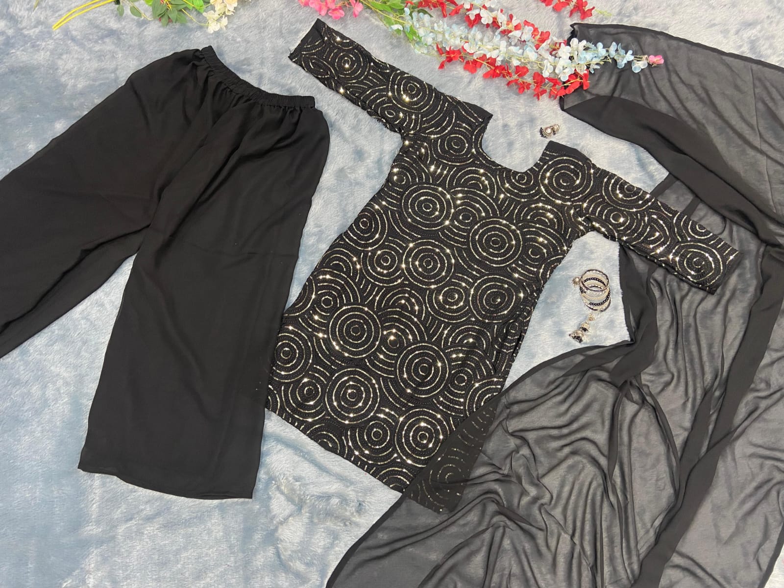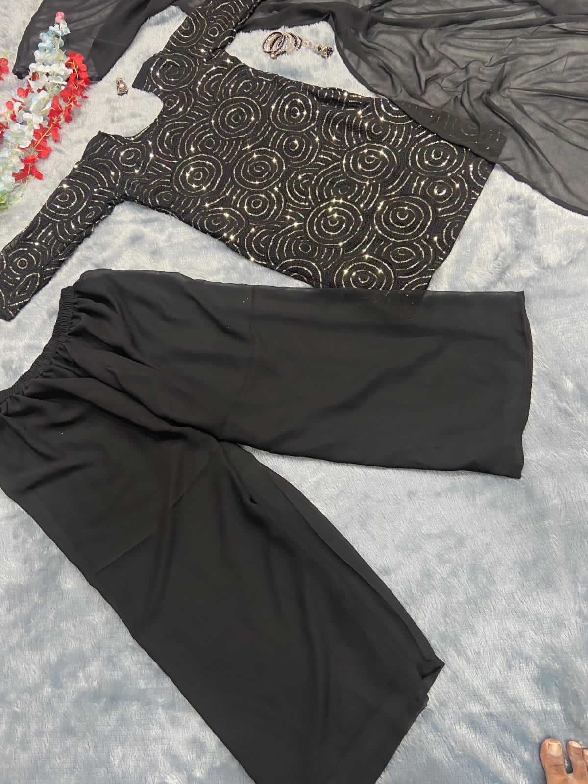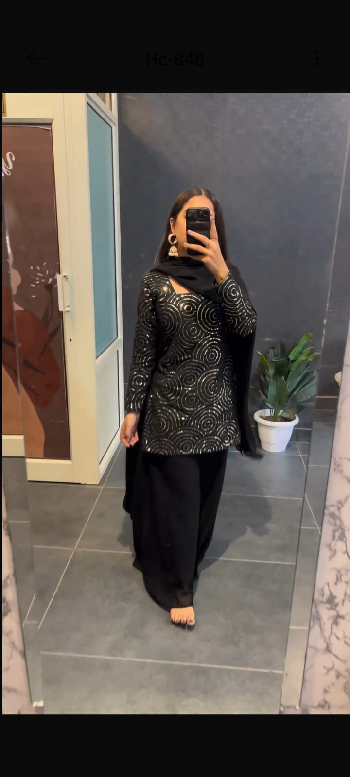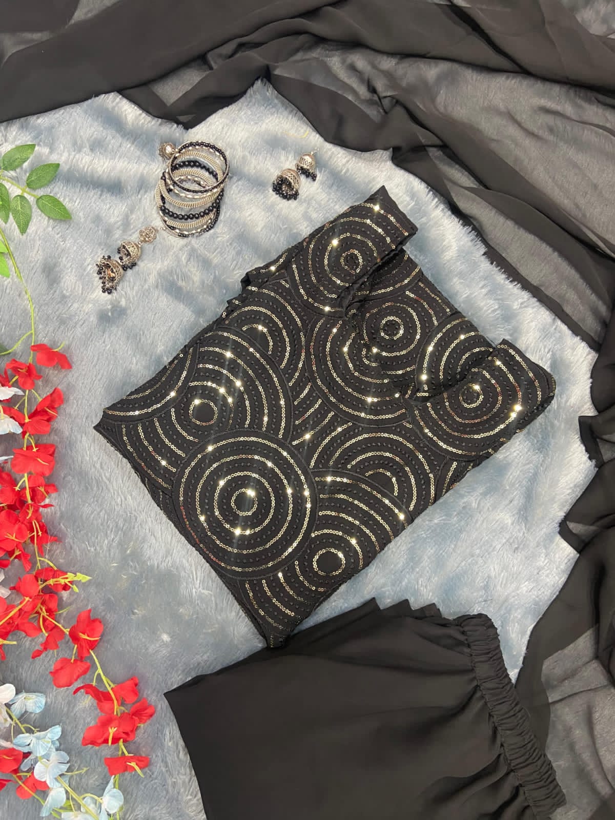 Top : Premium Georgette Embellished With Beautiful Sequins Work Both Side Work Front And Back With Silk Inner With Work Sleeves( Full Stitched Upto Xxl )