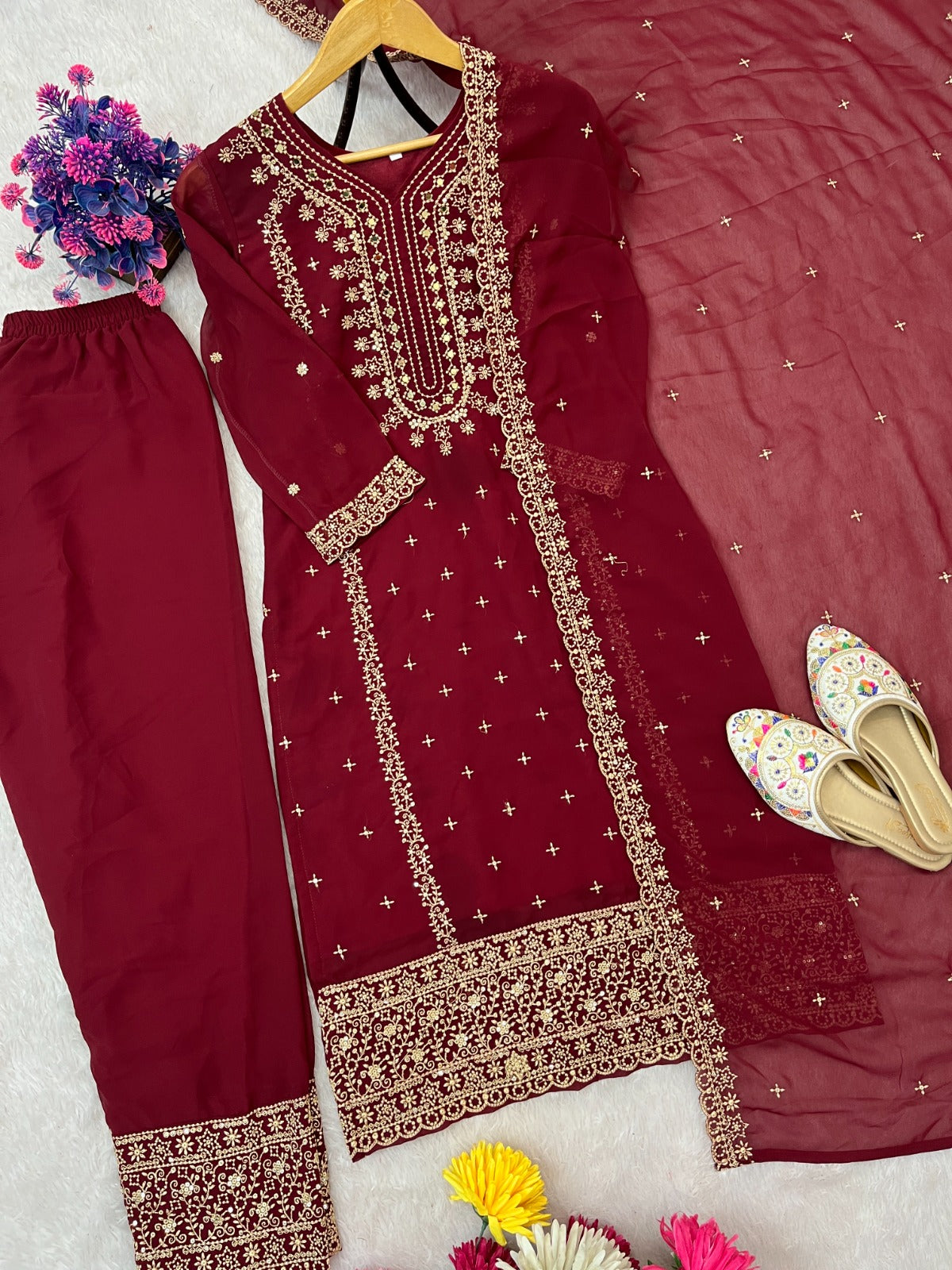 FESTIVAL SPECIAL DESIGNER HEAVY EMBROIDERY SEQUENCE WORK TOP PENT WITH DUPATTA SET
