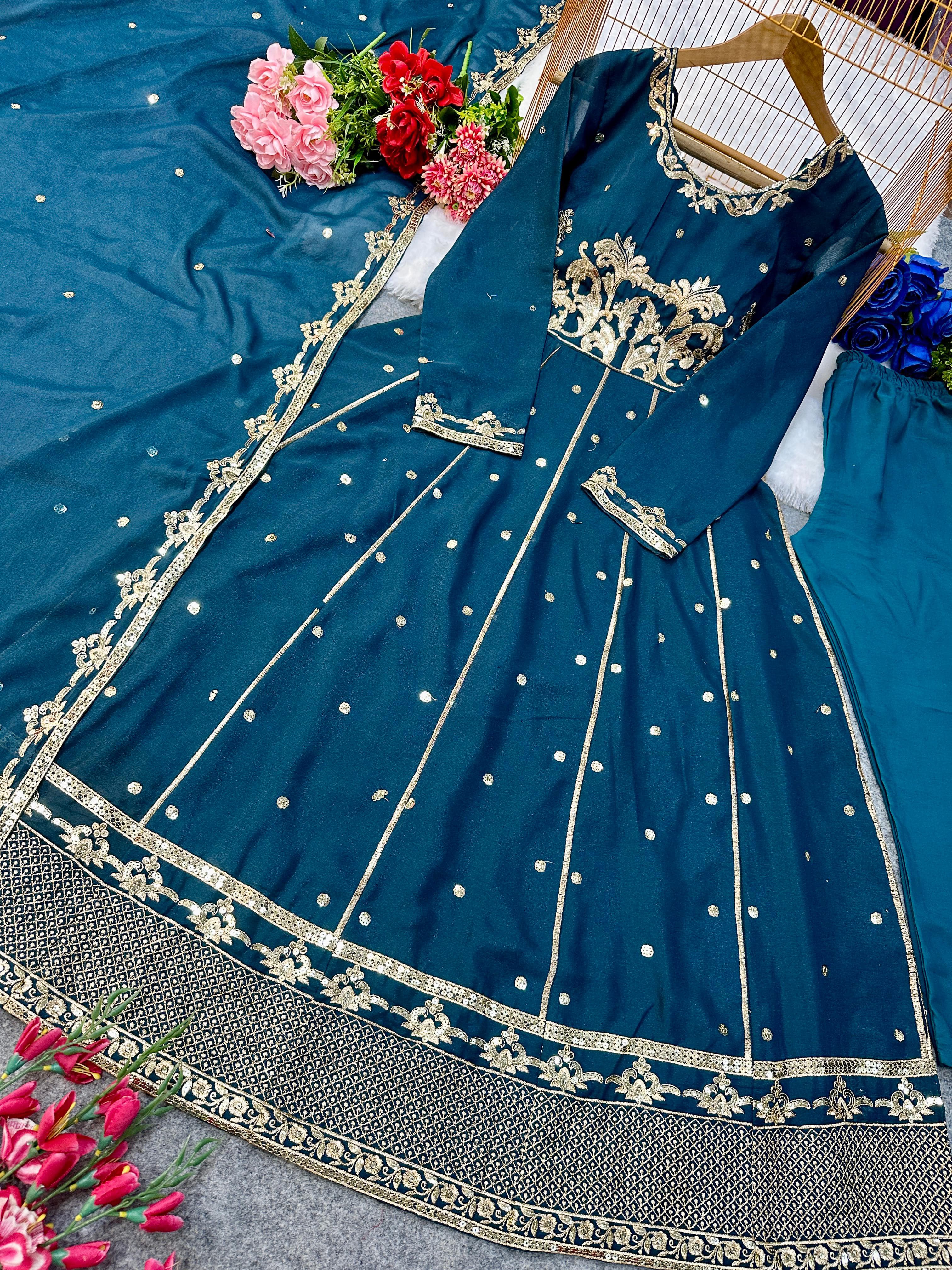 👗 GOWN FABRIC :HAVY STAR GOARGATE   WITH EMBRODARY WORK WITH FULL SLEEVES AND WORK