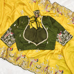 🧷 Blouse : Premium Mono Silk With Heavy Embroidery Threads 🧵 Codding & Sequins Work Unstiched Blause