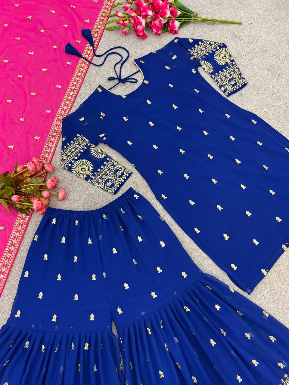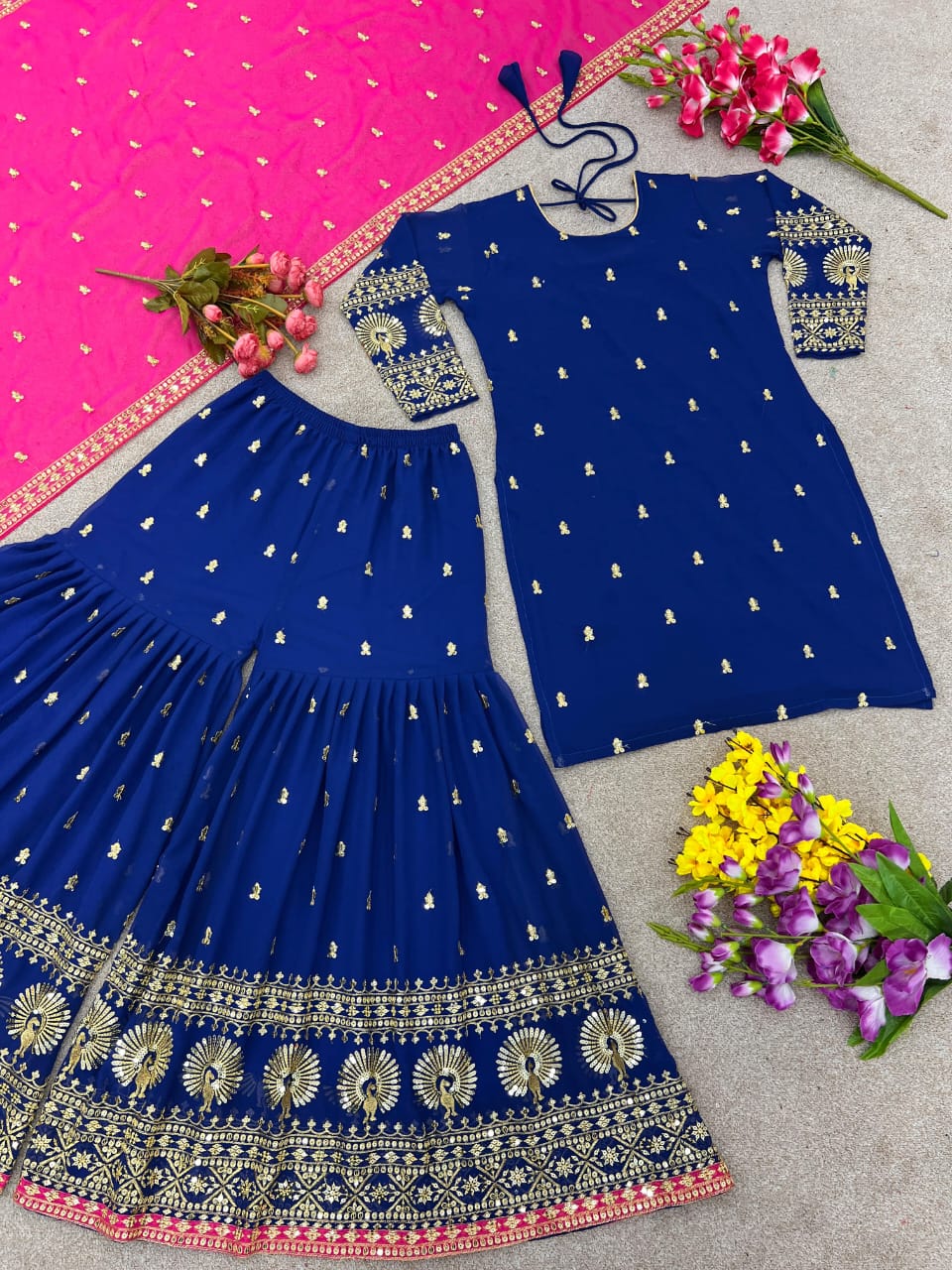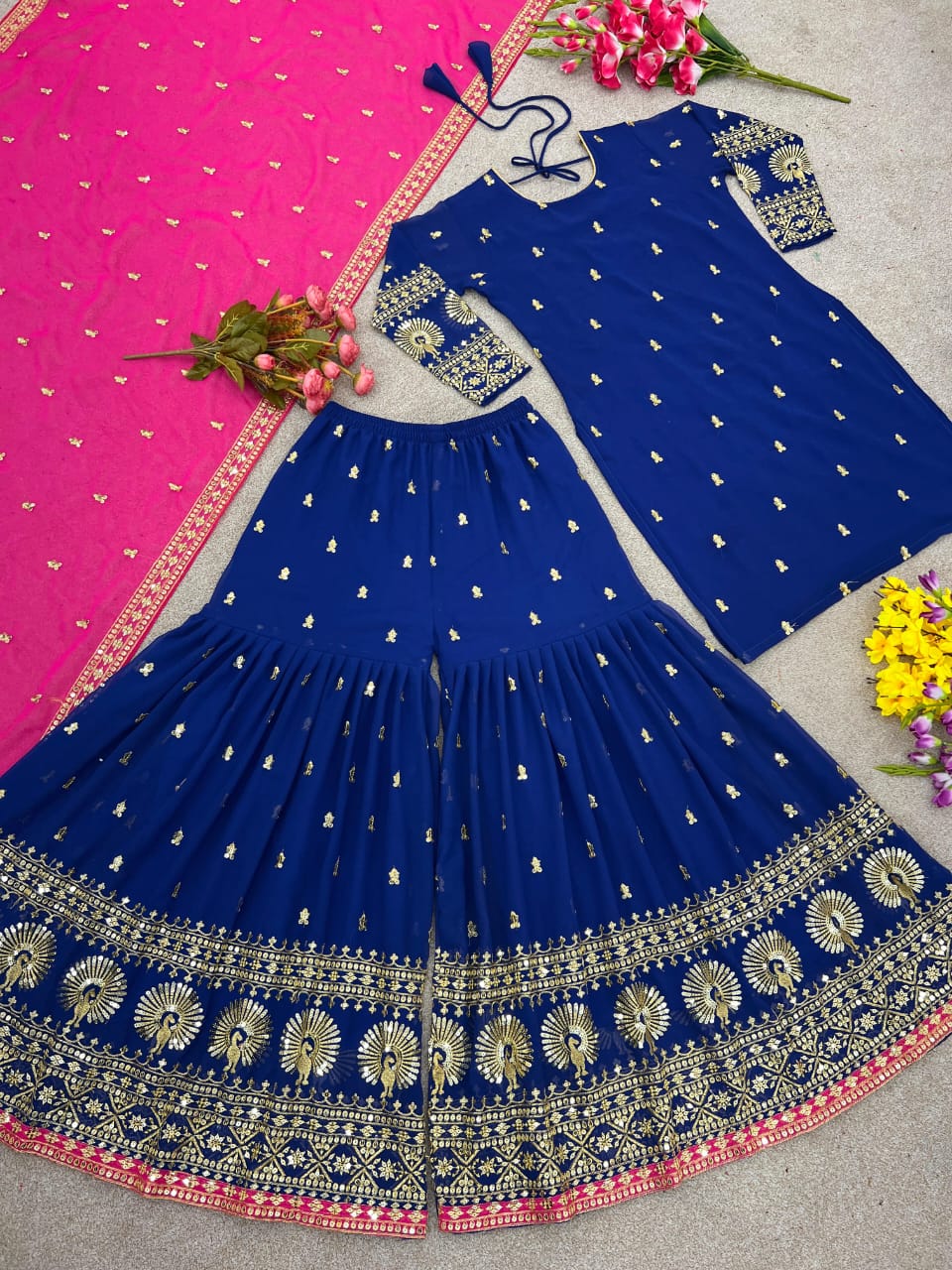 Plazzo Fabrics :Heavy Faux Georgette With Heavy Embroidery Sequence Work