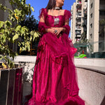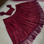 ๐Ÿ‘‰ Georget lehnga with sequence work & net ruffle border work