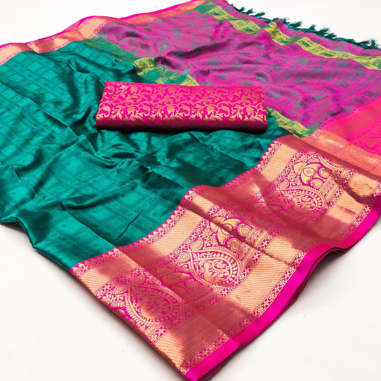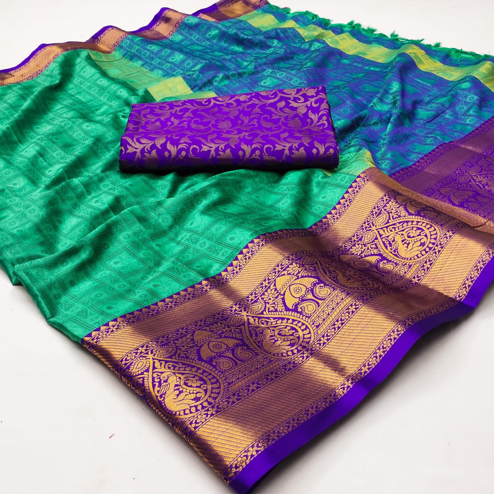 Fabric: HEAVY RICH COTTON SILK DESIGN & JEQUARED WEAVING & RICH HEAVY BORDER WITH JACQURD BLOUSE AND CHIT PALLU CONCEPT…
