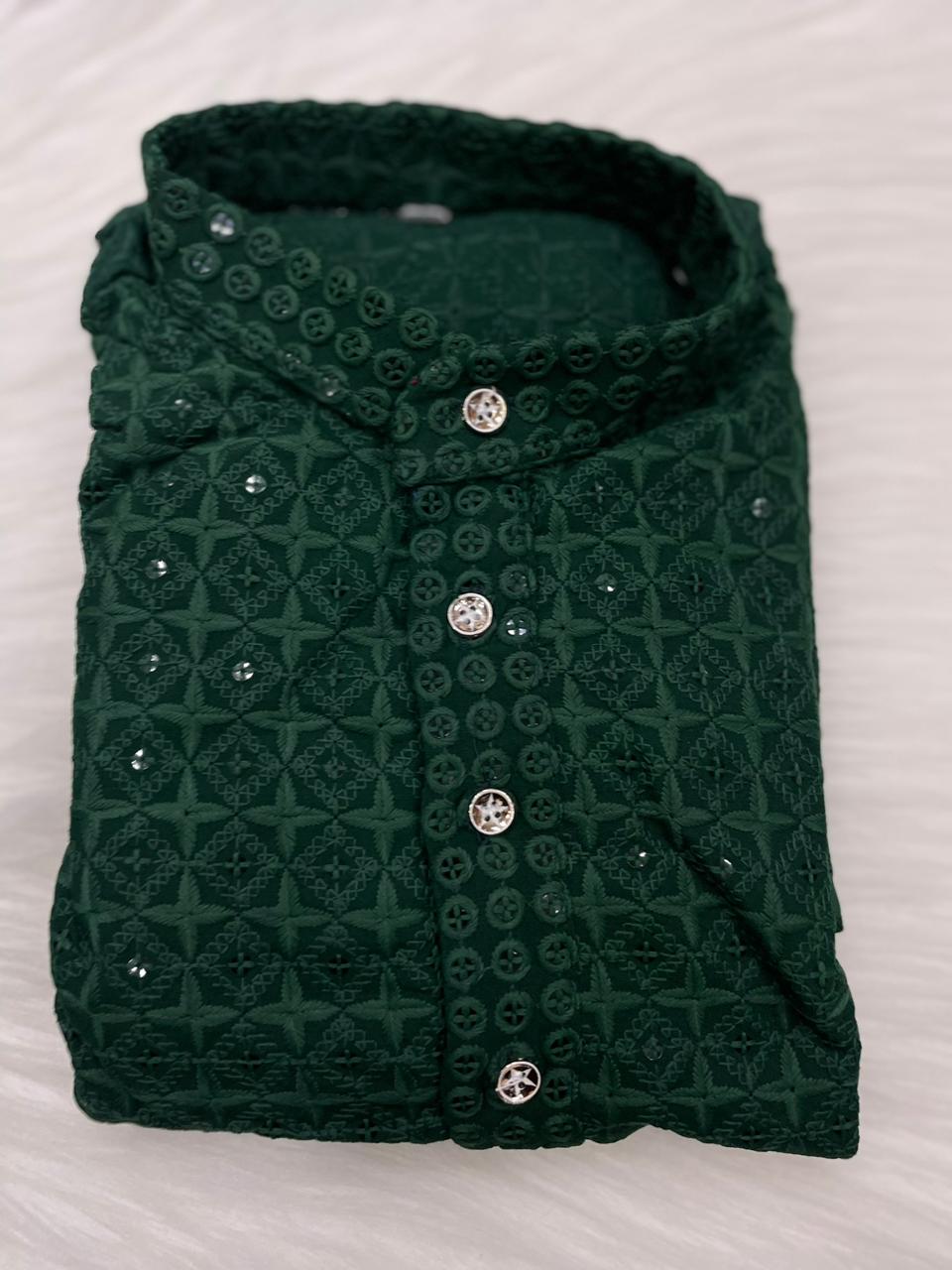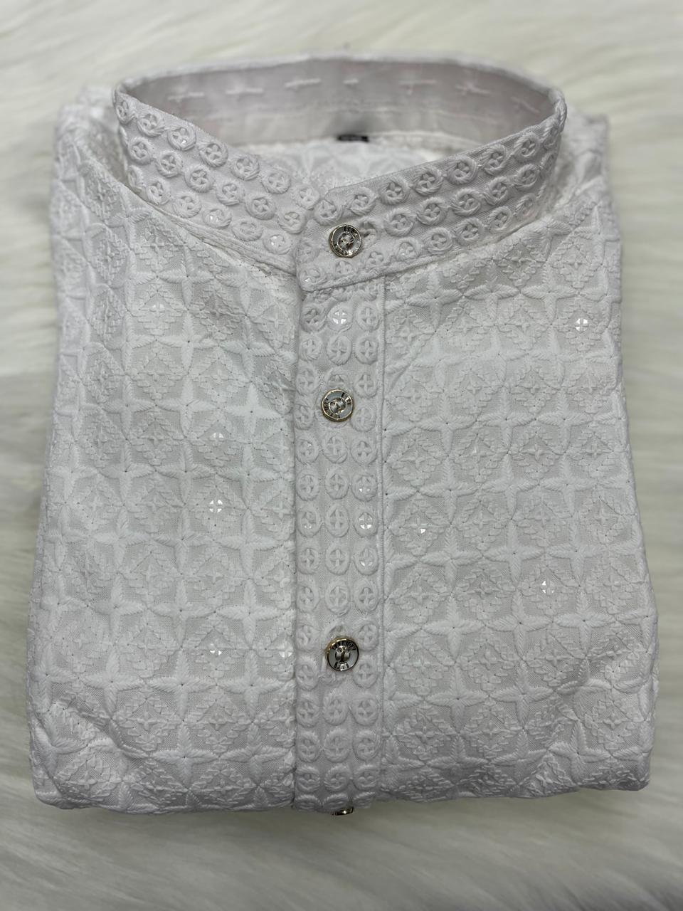 Kurta : rayon with chicken sequence stylish pattern with pocket and Exclusive Button.