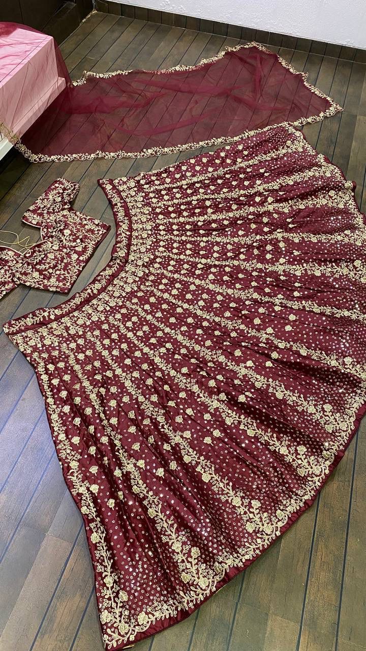 ⏭ Heavy Silk lehnga with sequnece & dori work + can can attach