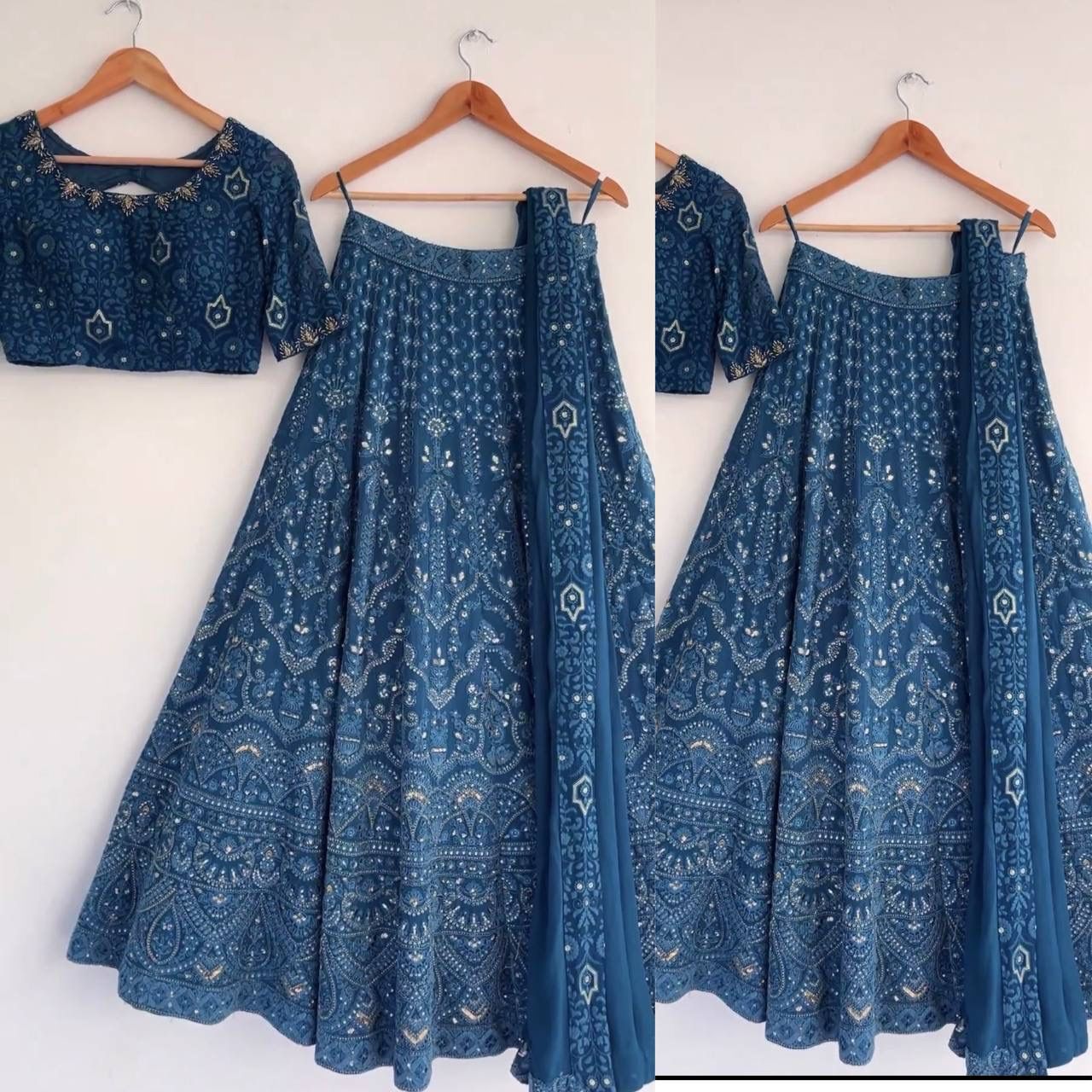 💃 Size :-Free Size,Lehenga: Length-42" Inches Width-up To 42 to 44". Flair bottoms -up to 3.20 Mtr.