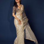 Saree Work : Heavy Thread Zari With Sequnce Border Exclusive Pattern Work