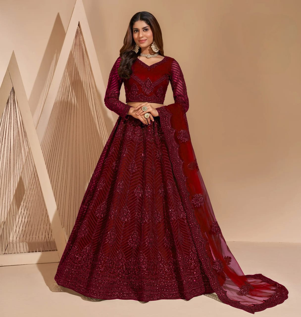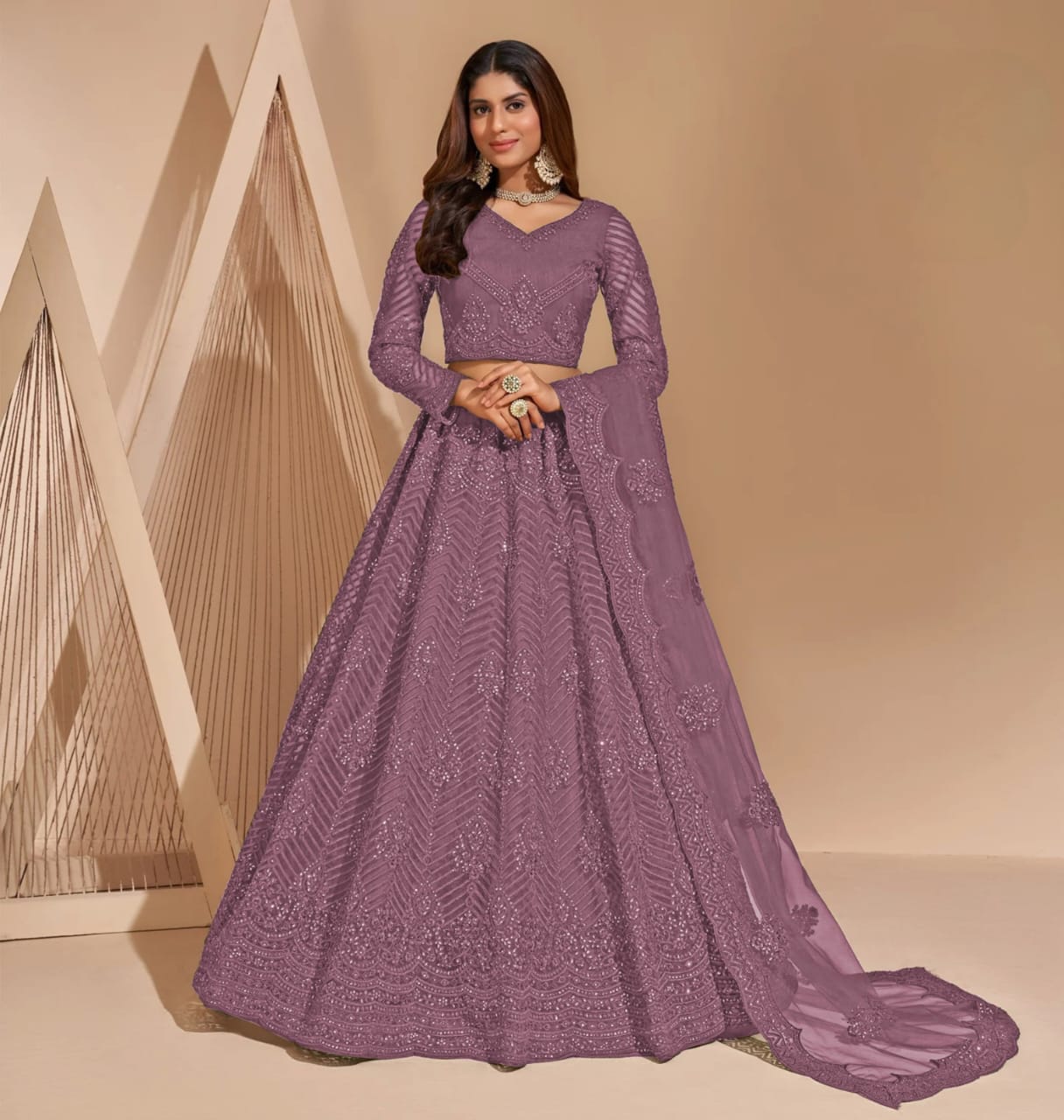 👗  LEHNGA:NET WITH CHAIN  DESIGN WORK