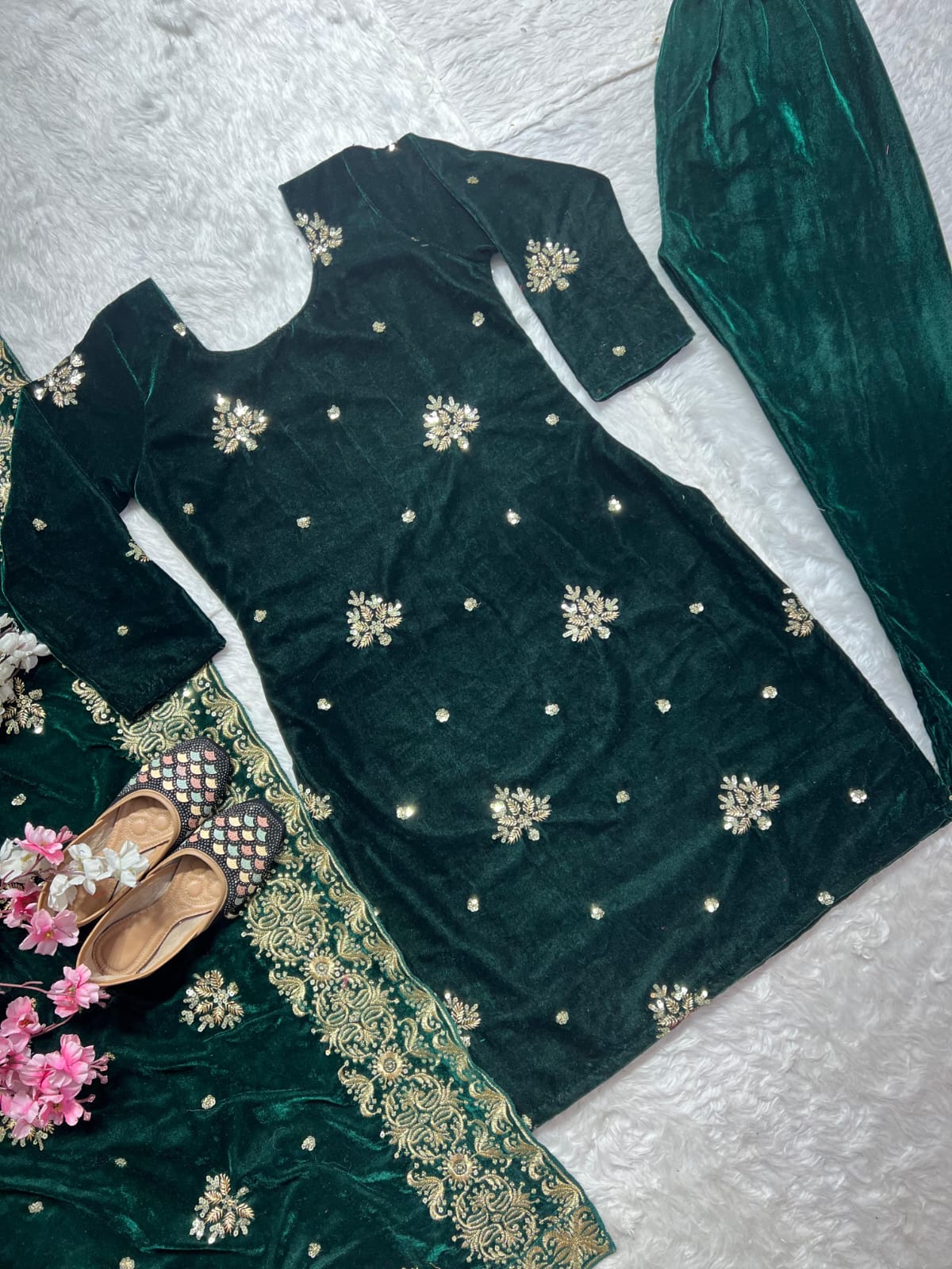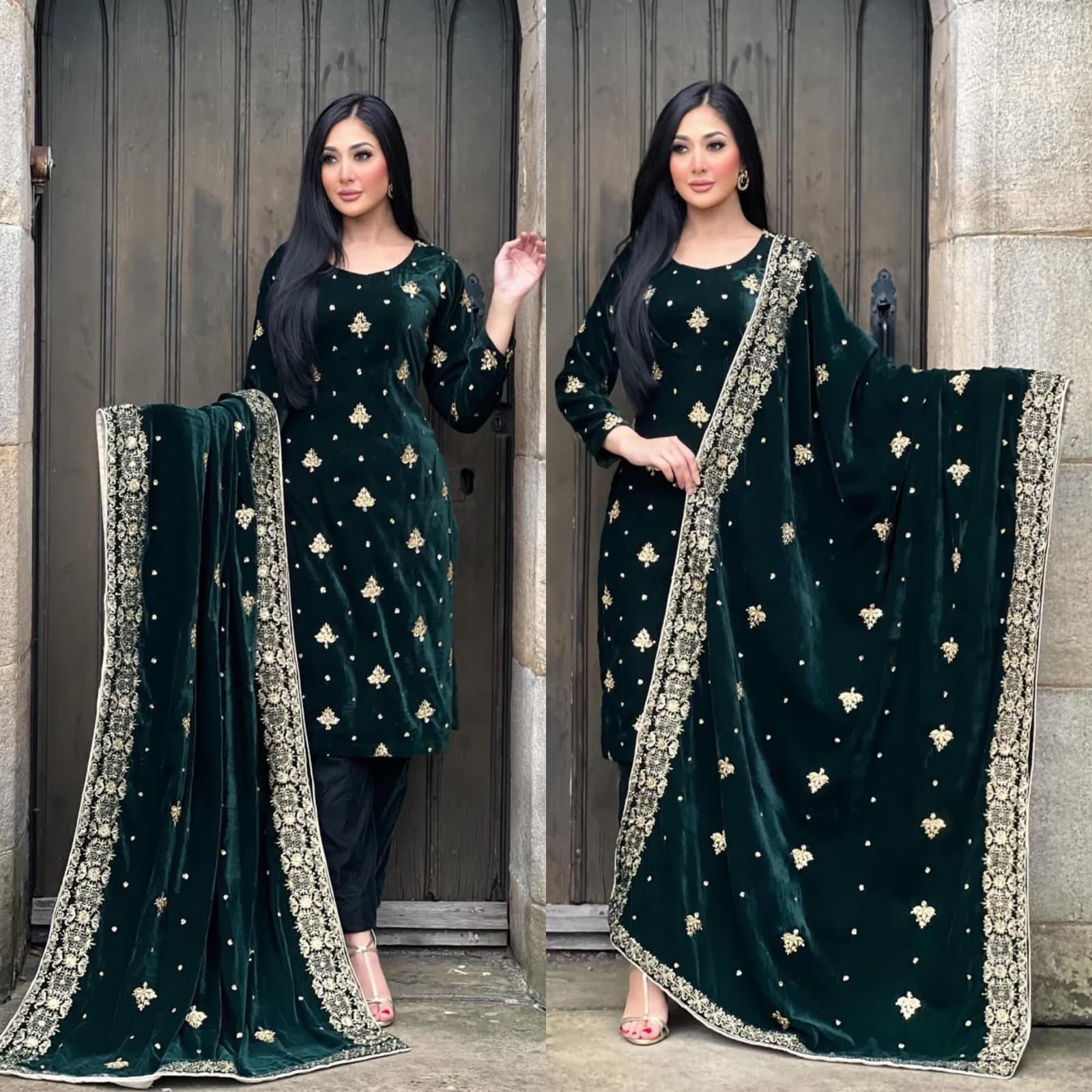 šŸ’ƒDupatta Fabric : Heavy Viscous Velvet With Embroidery Sequence Work Four Side Lace Border