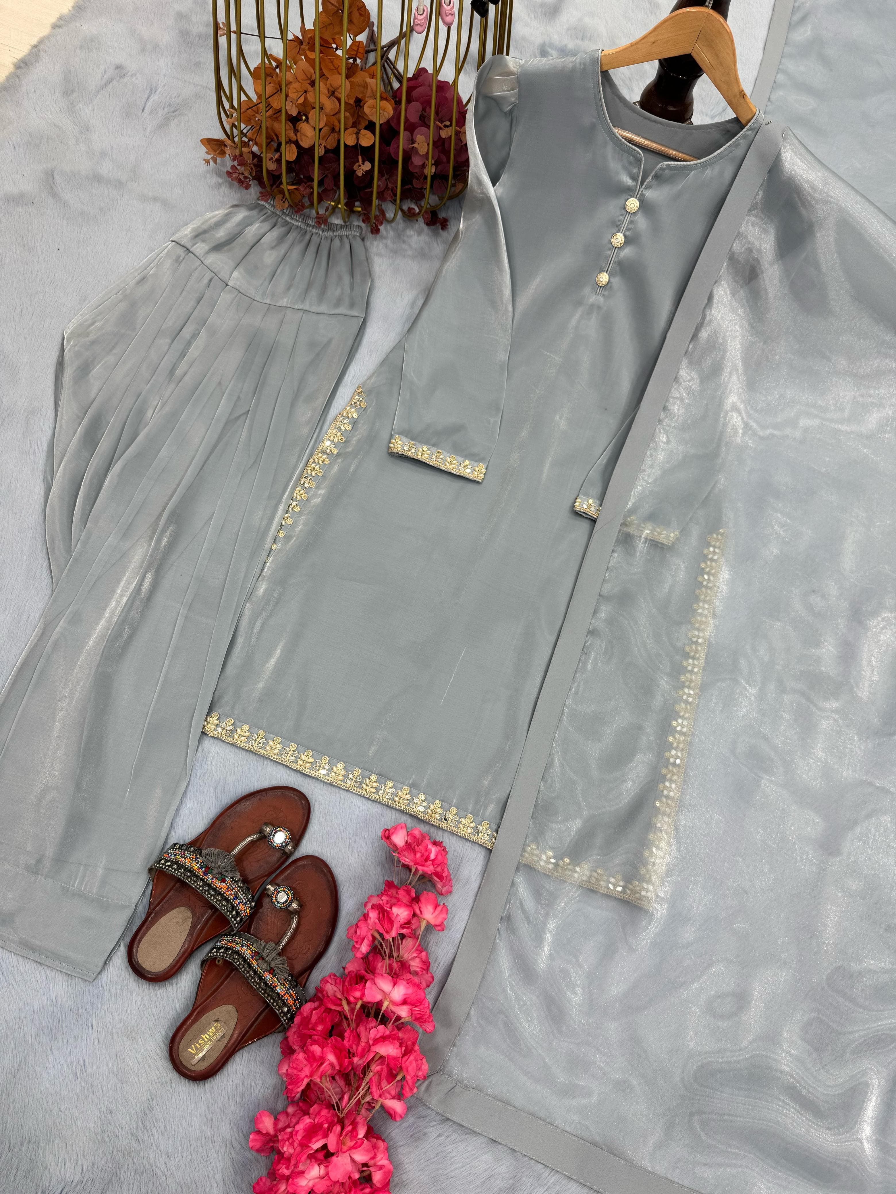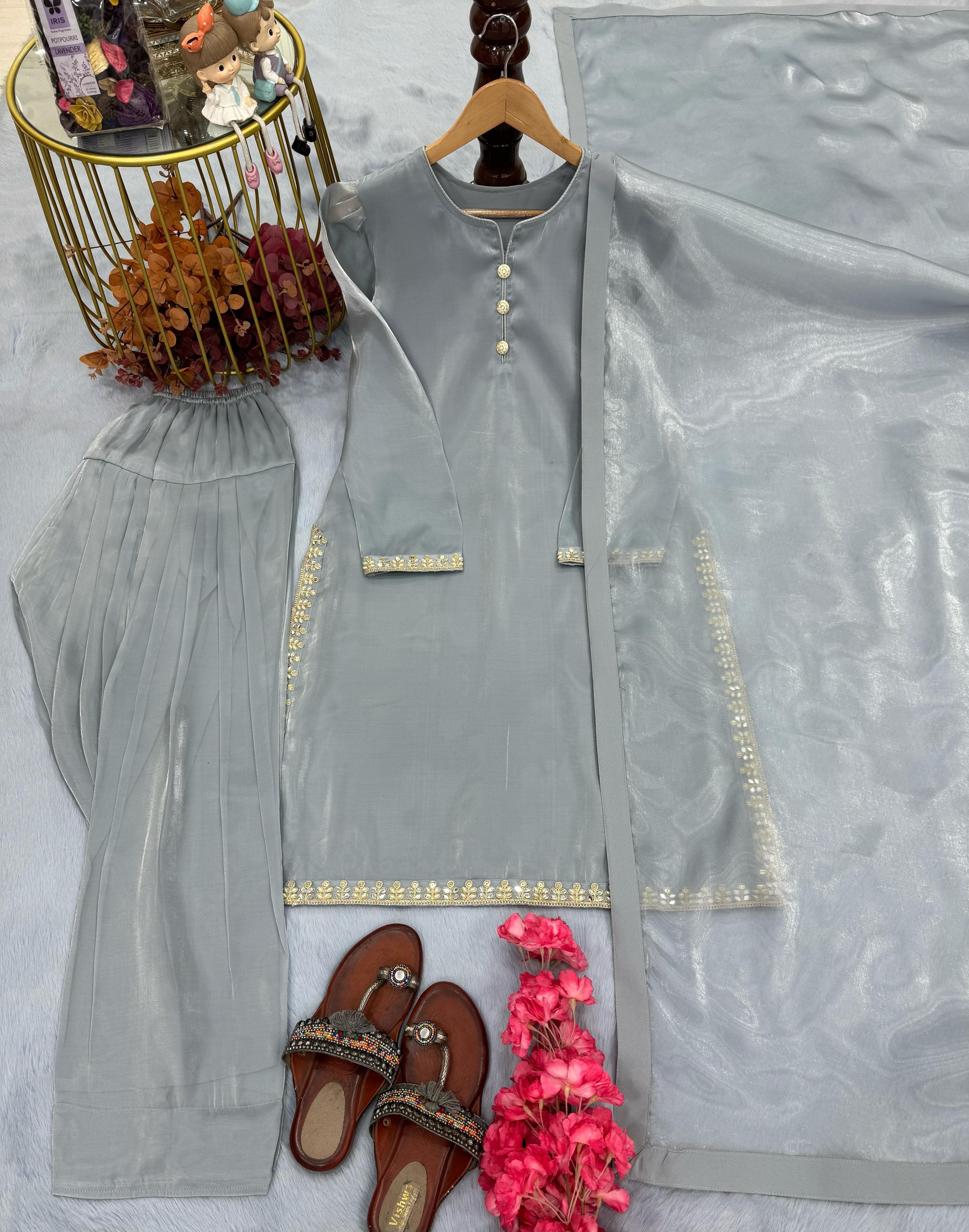 Top Fabric :pur jimmy choo  With Embroidery  work with sleeve with hand work