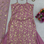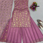 Looking for this same colour beautiful Designer Suit On havy Jimmy Chu febric With inner and Thred & Sequnce work and Plazoo On also Jimmy chu febric With inner and Dupatta on also Jimmy Chu With Thred & Sequnce work.