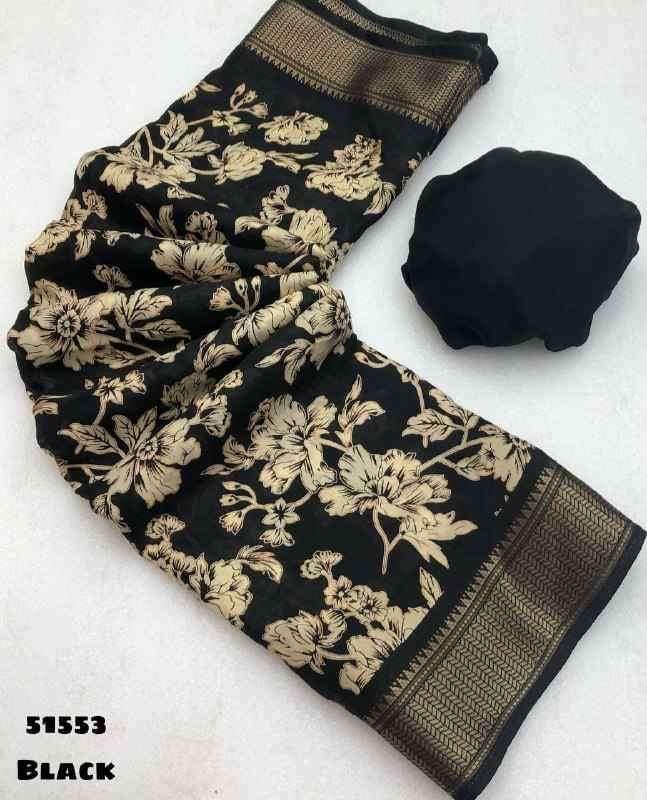 Launching new Chiffon floral printed saree with zari weaving temple design border
