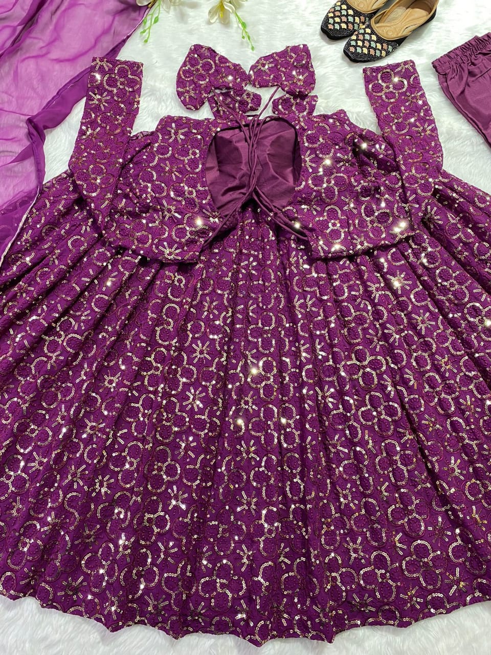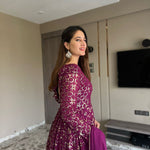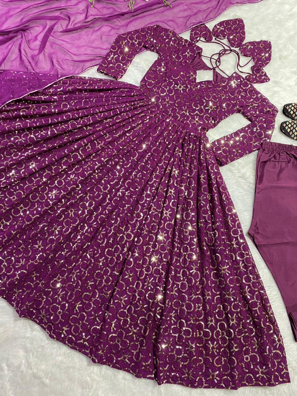 👗 GOWN WORK :-_ SEQUENCE 5MM, MULTI NEEDLE WORK, WITH EMBROIDERY WORK WITH FULL SLEEVES_
