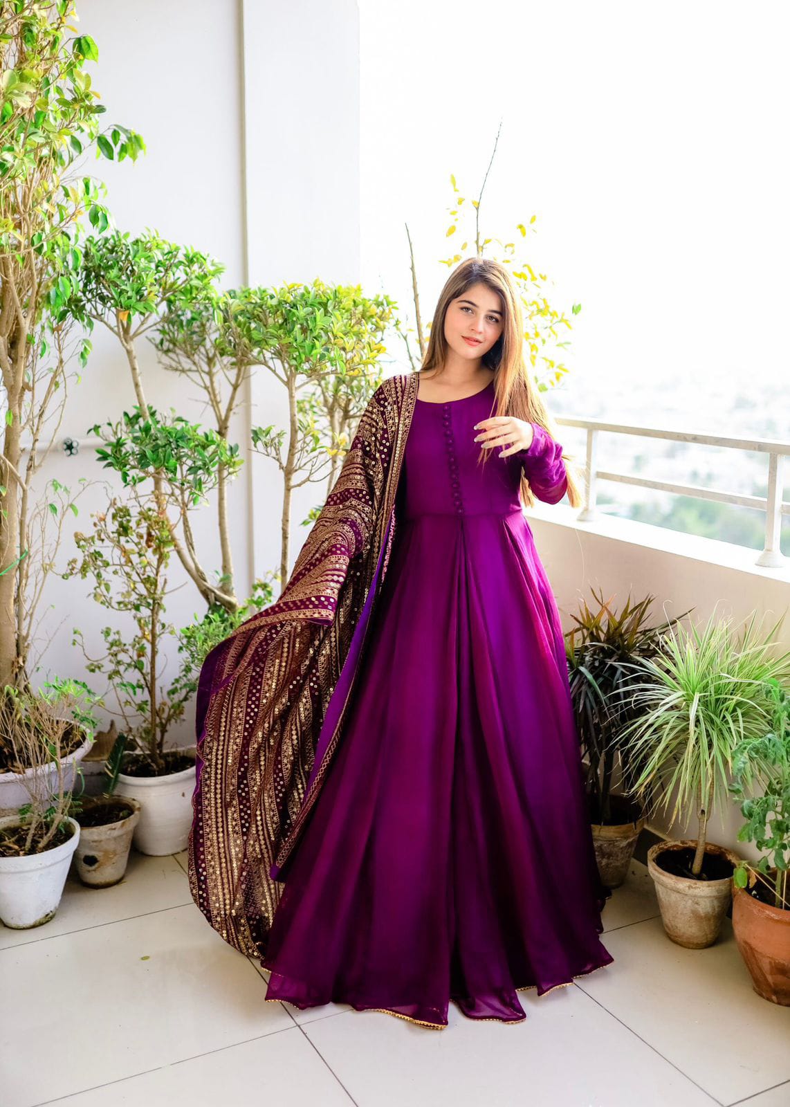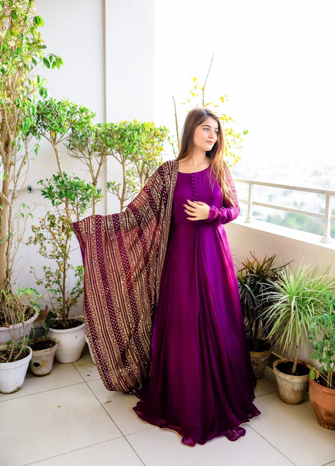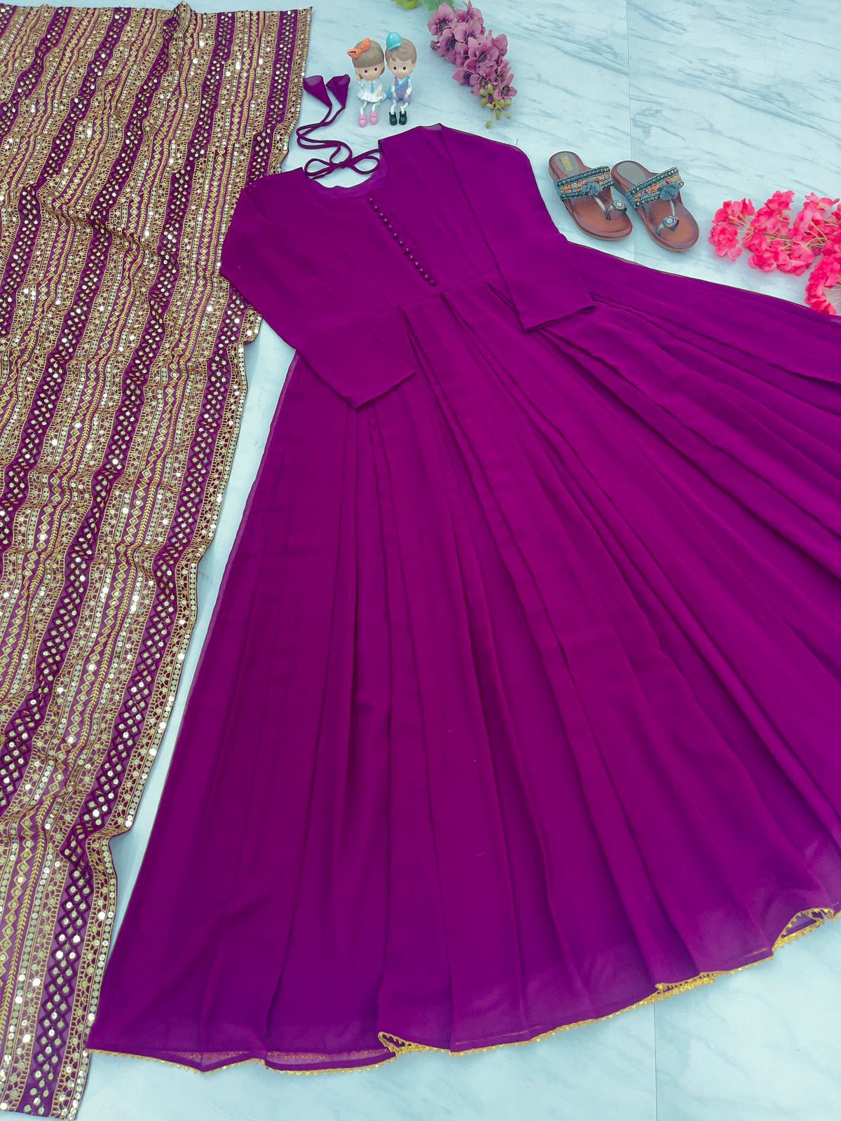 👉Gown Fabric :Heavy Faux Georgette With Potali Buttons With Fancy Lace Border With Sleeve