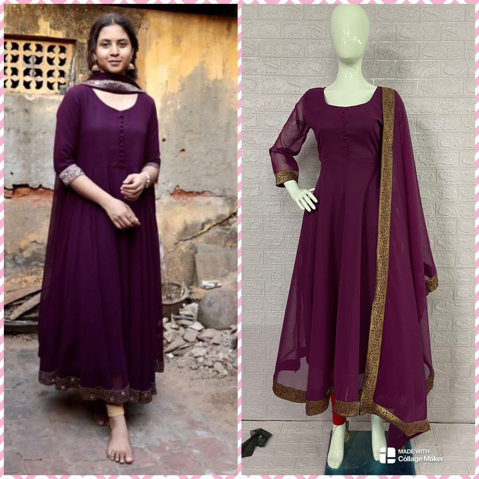 Featuring Solid Georgette Maxi Dress With Jacquard Lace border Pair It Finely combination of 💐Jacquard LaceThis Is Made For Simple Casual Dressing With Subtle Detailing! Hurry, Get Yours Now! 😍 ♥️