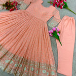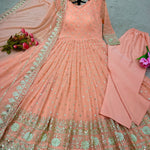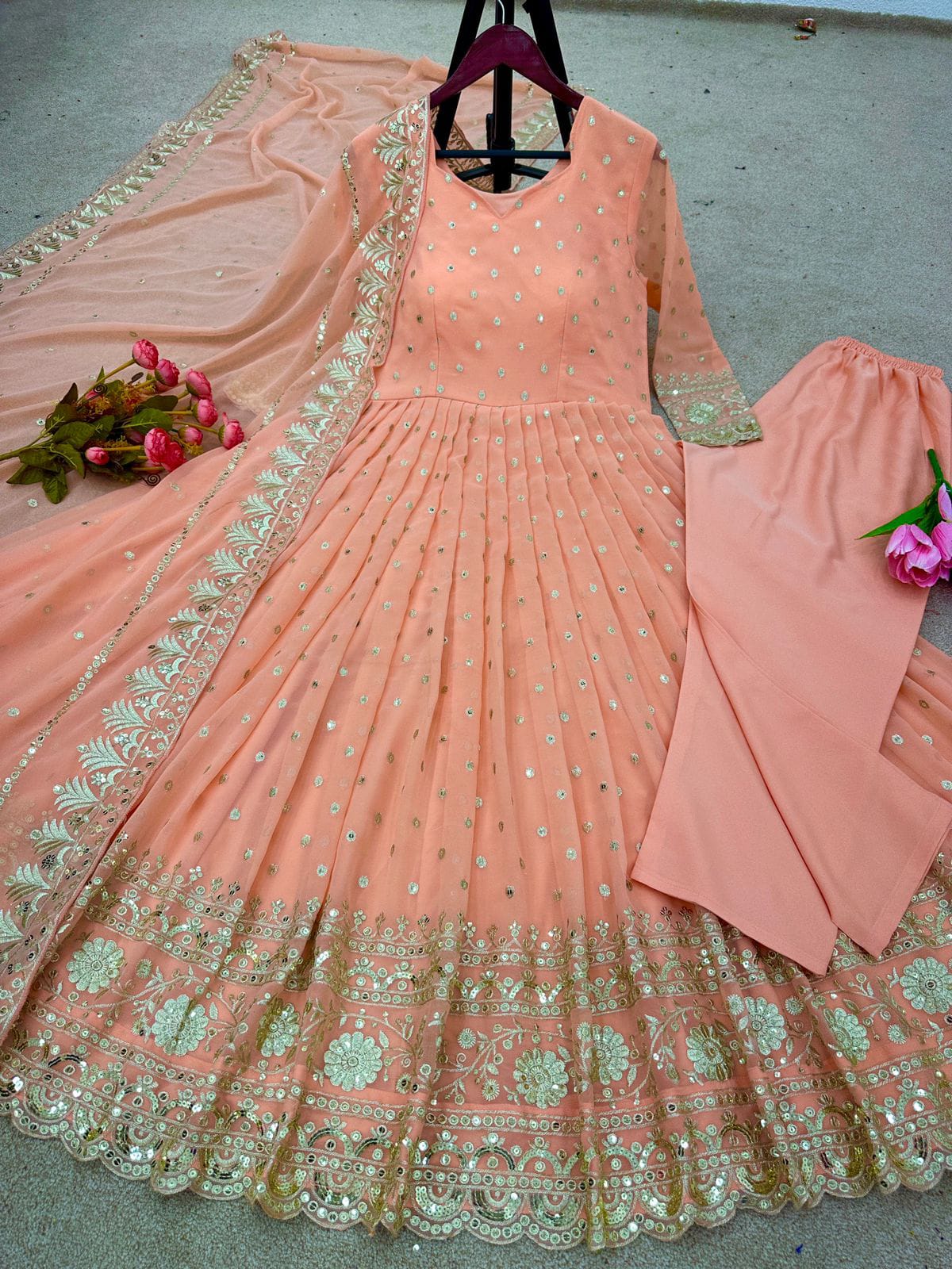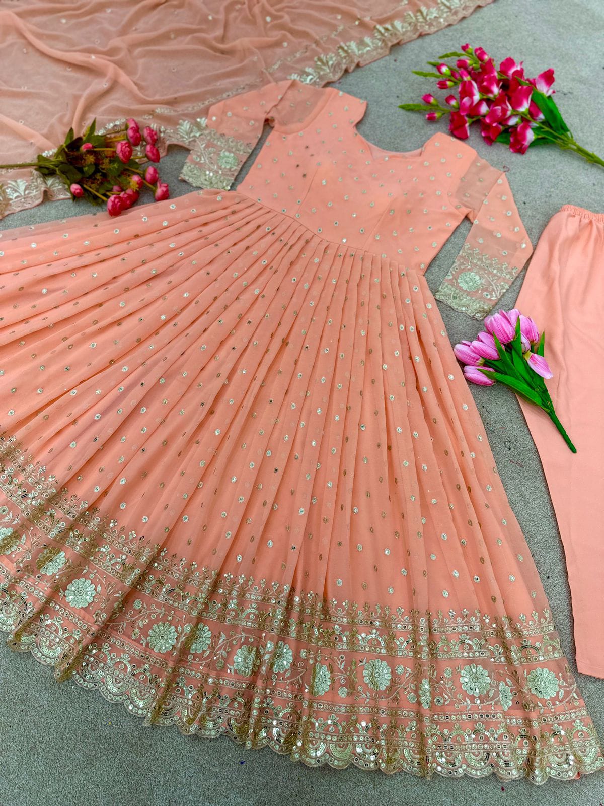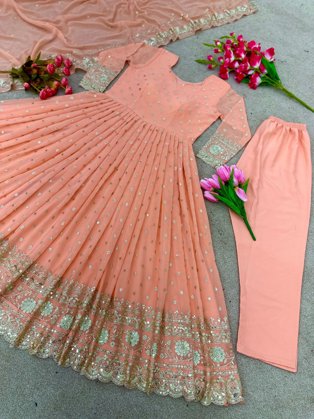 πŸ‘— Gown Fabric :Faux Georgette With Full Heavy Embroidery Sequence Work With Full Sleeve and Attached Pad