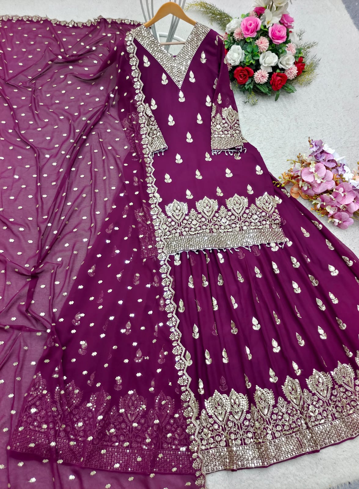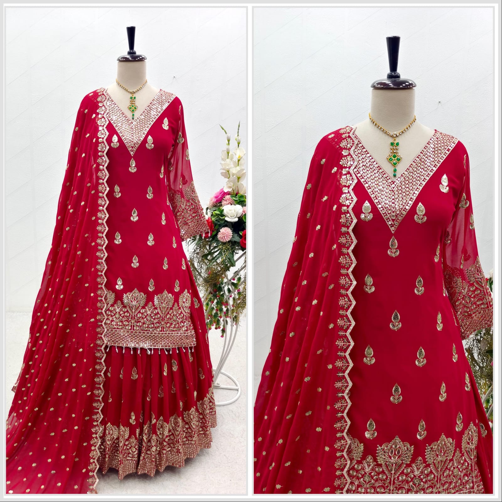 💃TOP Fabric : Heavy Fox Georgette With 5mm Siqwans Embroidery Work With Sleeves With Letakan less Work