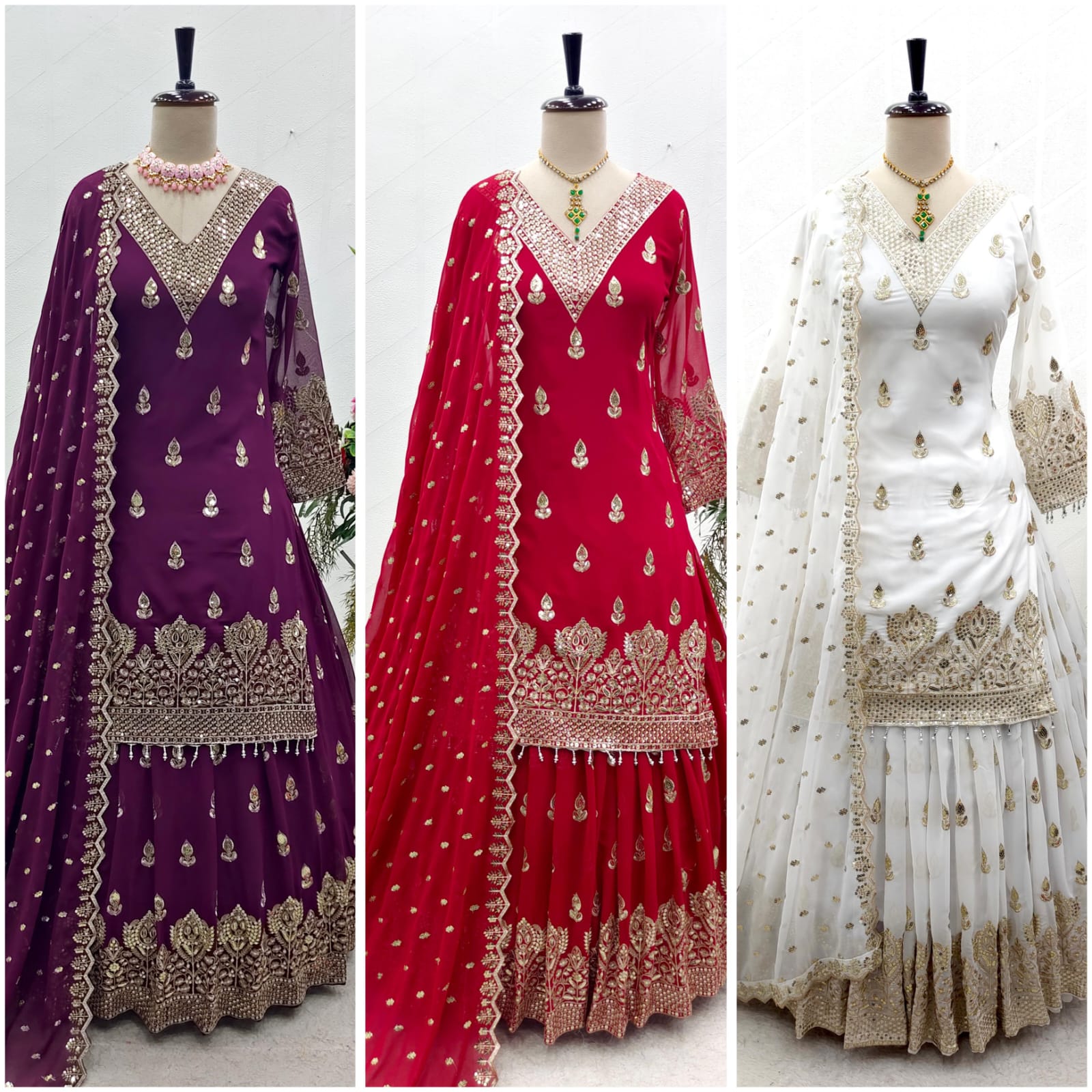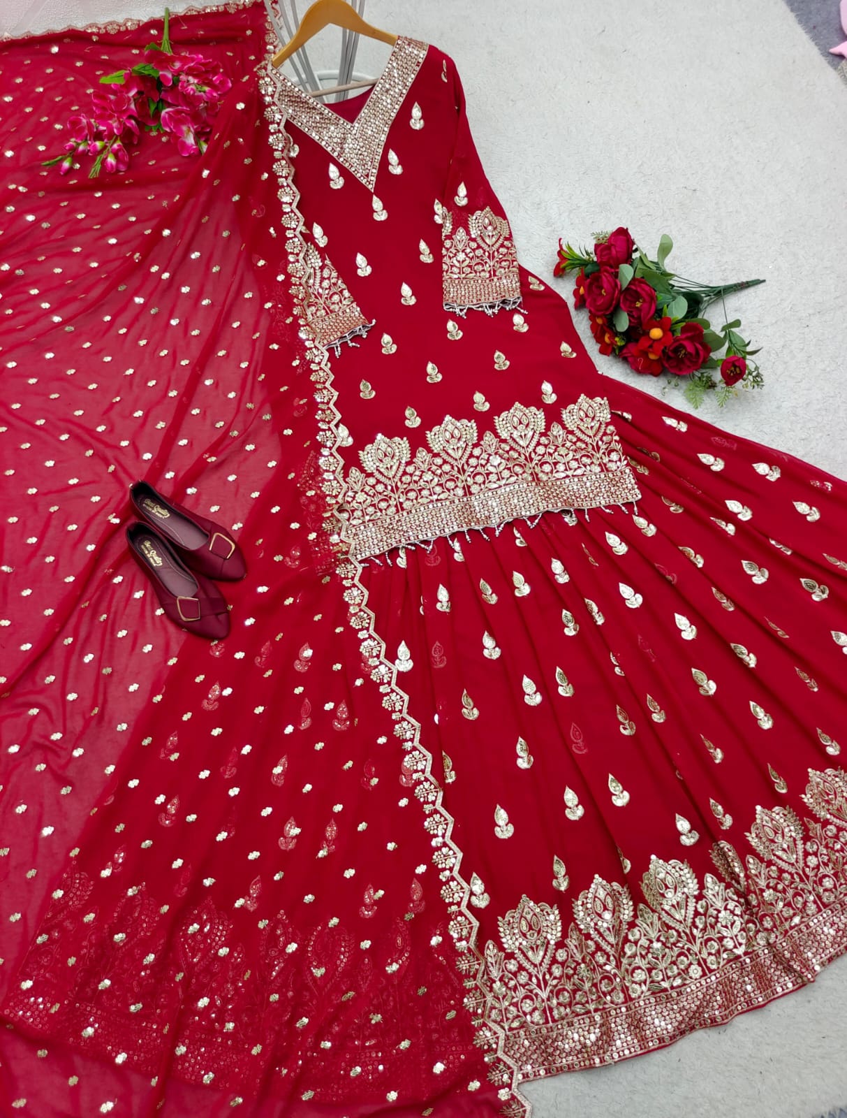 🌺Dupatta Fabric: Heavy fox Georgette With 5mm Siqwons Embroidery Work With Full-Stitch