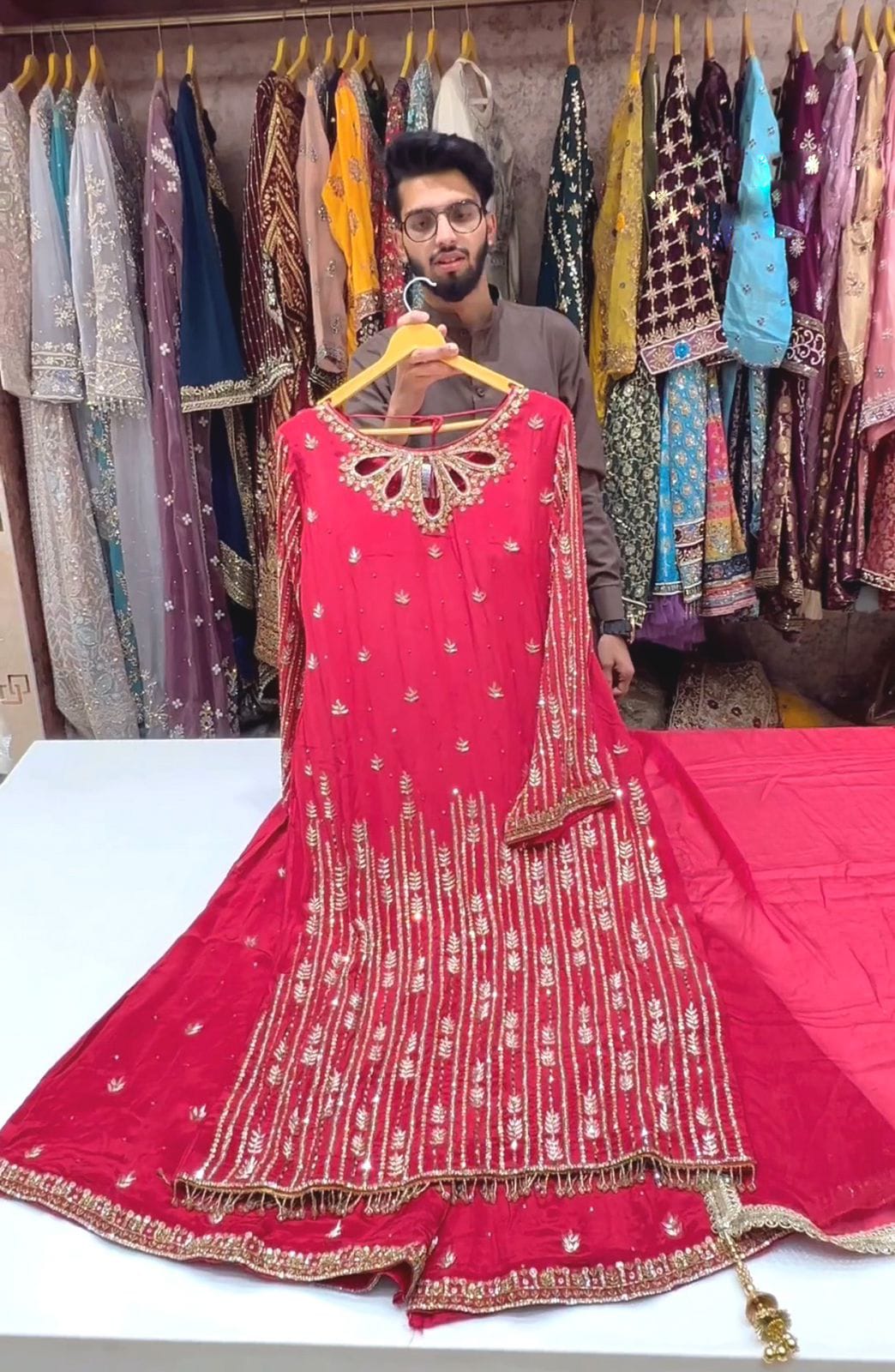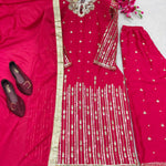 👉👗Top Fabric : Heavy Pure Satine Silk With 5mm Siqwans Embroidery Work With Full-Sleevs With Fency Latkan Dori With Fency Latkan Less