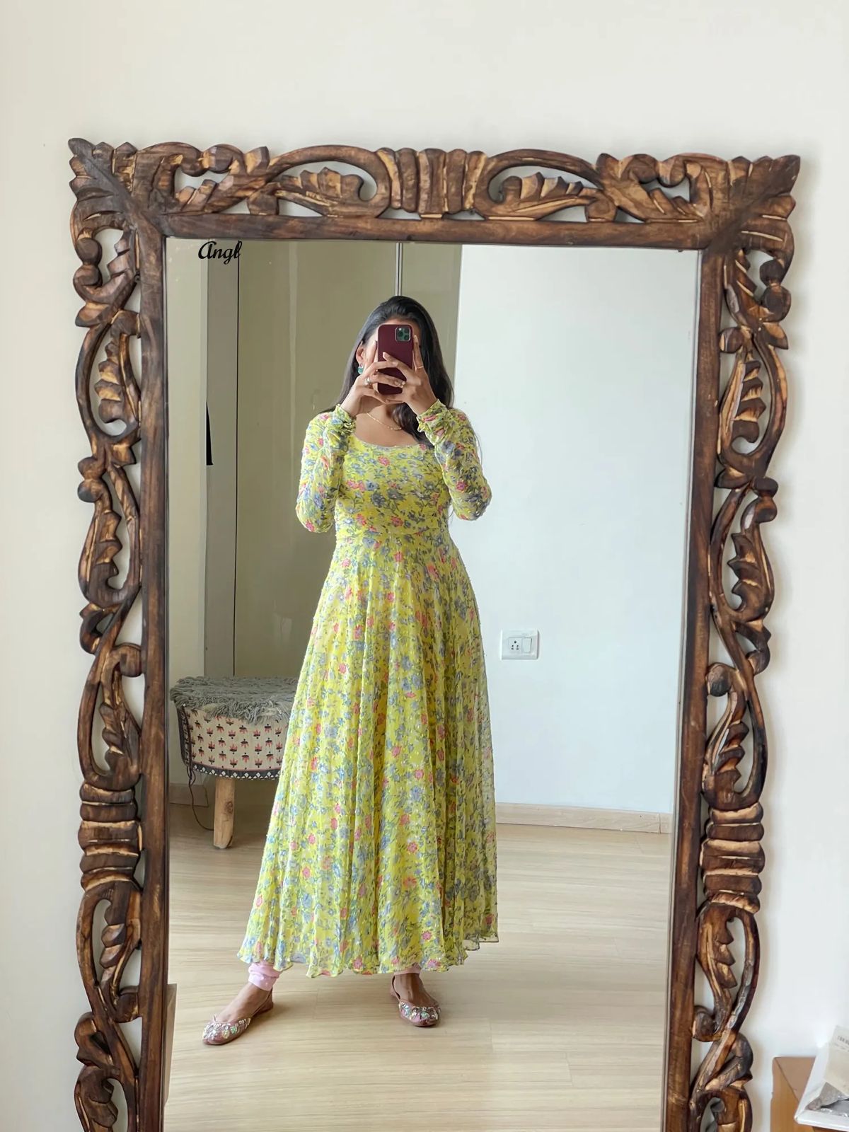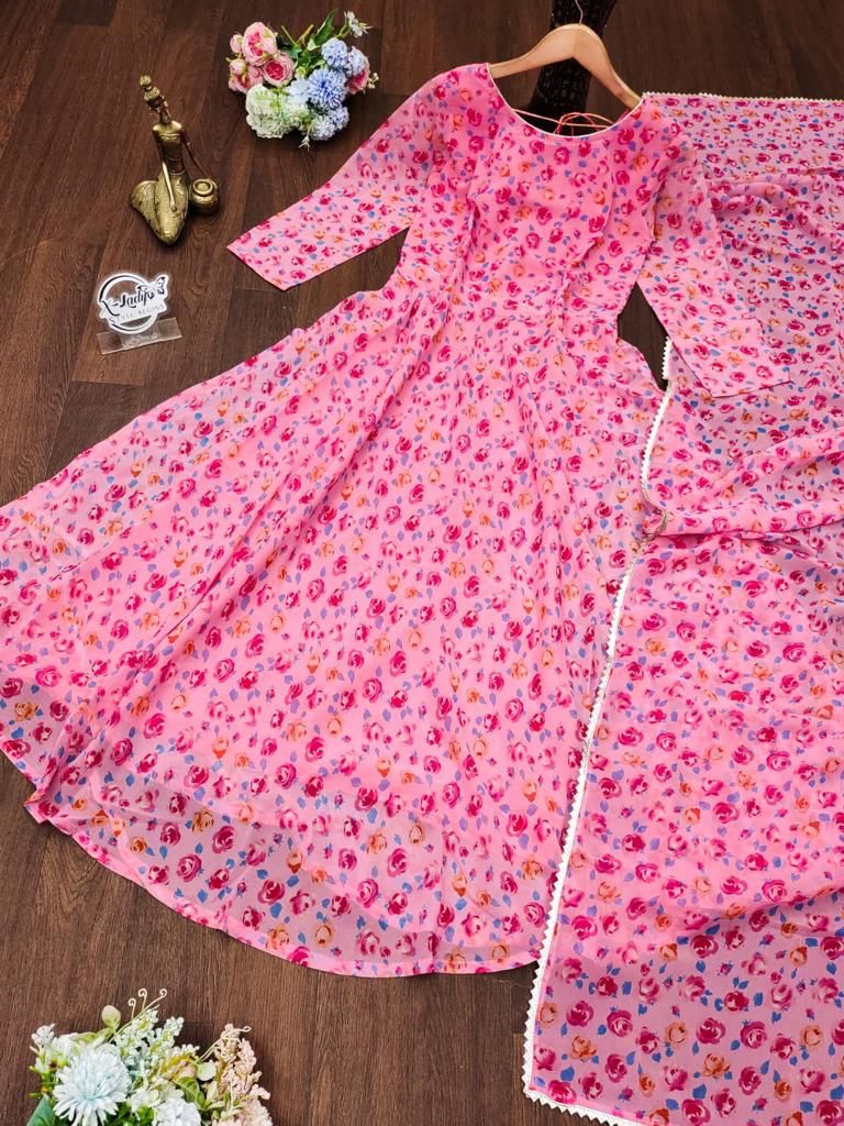 Featuring Solid fox Georgette Maxi Dress With dupatta Pair It Finely combination of flower 🌺 print! This Is Made For Simple Casual Dressing With Subtle Detailing! Hurry, Get Yours Now! 😍 ♥️