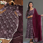 Featuring Solid Butti fox Georgette Maxi Dress With dupatta Pair It Finely combination of kolam mural🌺 print! This Is Made For Simple Casual Dressing With Subtle Detailing! Hurry, Get Yours Now! 😍 ♥️