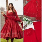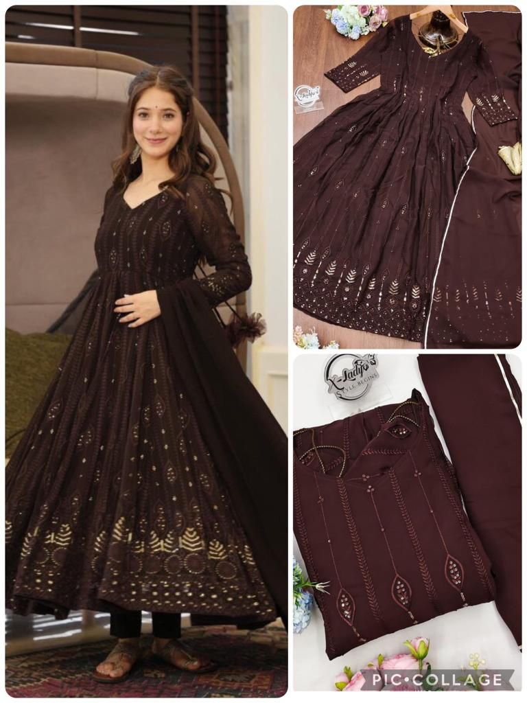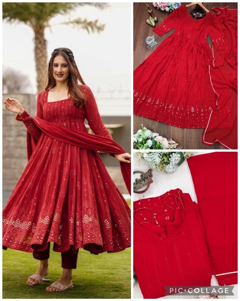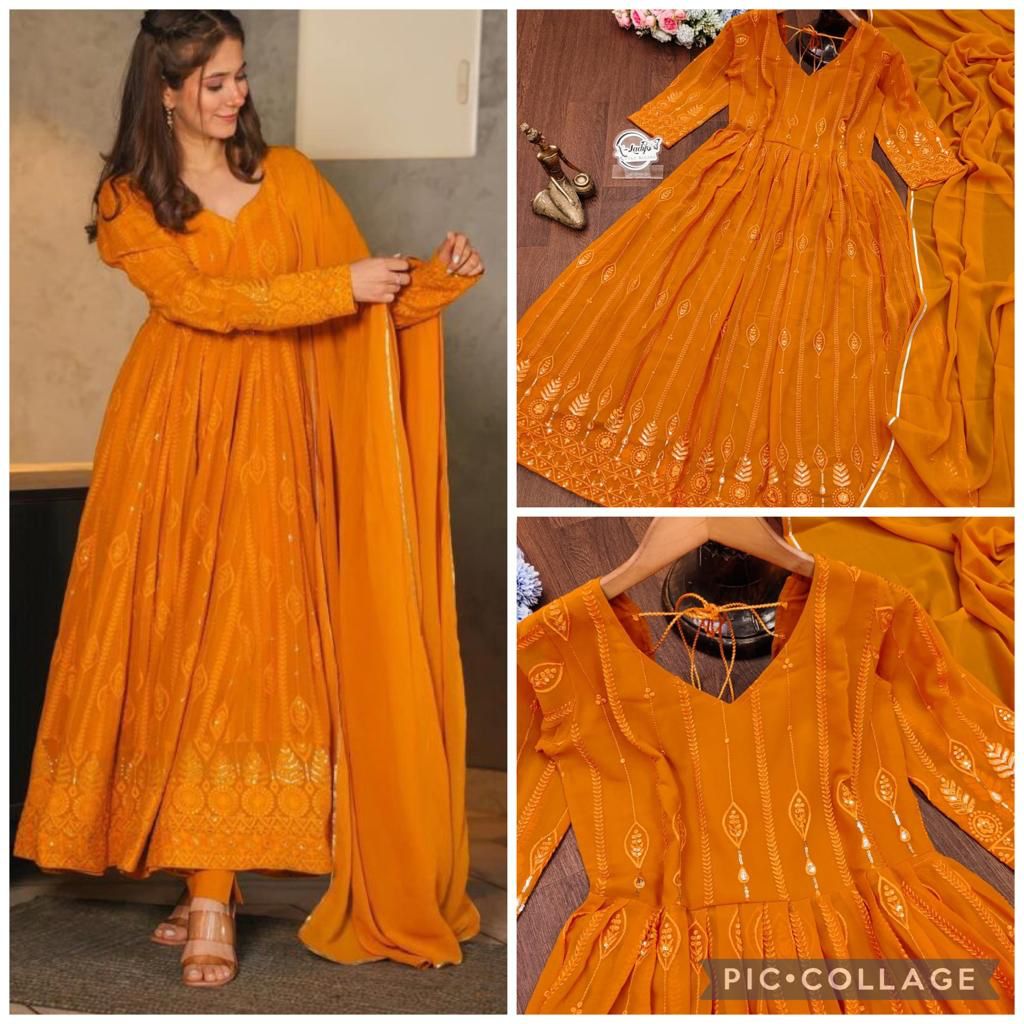 Here's Presenting You A Beautiful And Elegant Embroidery Sequence Anarkali✨🌸 This Orange Set Of Chikan Kari look a like Gown With Those Beautiful heavy border details And Dupptta Adding A Charm For All those Parties To Look Bold And Beautiful