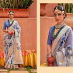 Saree : P.v Organza Silk With Jacquard Viscose Pallu And Border Elegant Water Digital Print Saree