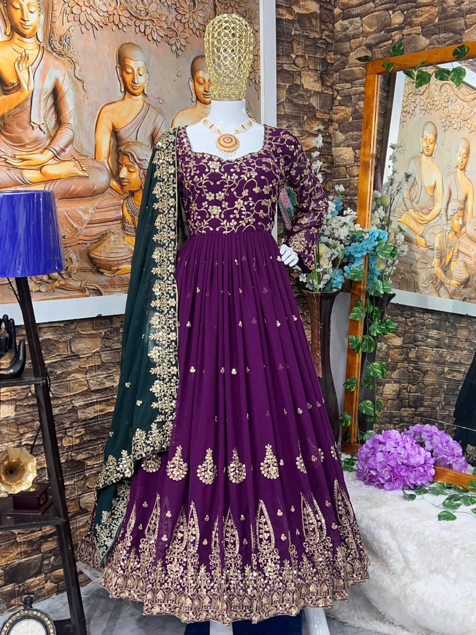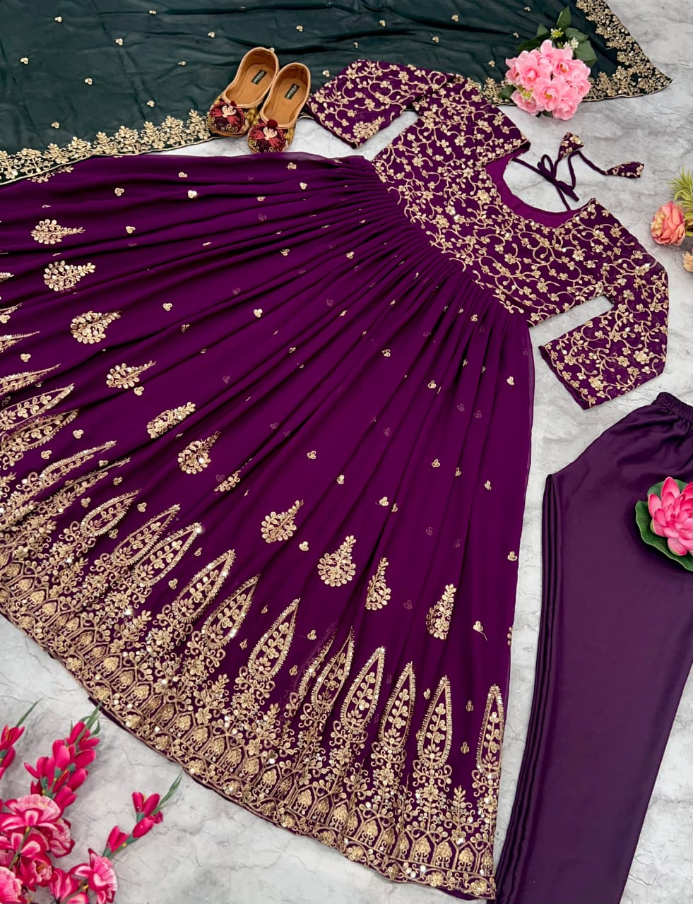 👗 GOWN FABRIC :HAVY FOUX GOARGATE WITH HAVY EMBRODARY WORK WITH FULL SLEEVES AND LATKAN