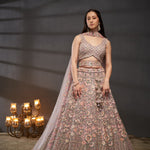• Dupatta:- Mauve Net Dupatta has a multi colour sequinse work Ethnic motif with Embroidery lace Border.