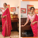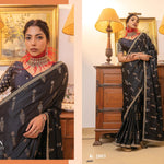 Saree Fabric: Viscose Satin Silk Adorned with zari motifs along with resham and sequins embroidery lace work on the border,