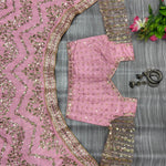 Blouse : Premiums Heavy Chinon Silk Embellished With Beautiful Multi Thread And Sequins Work With Both Side Work Front And Back  With Net Sleeves With Work ( Unstitched ,Both Side Work )