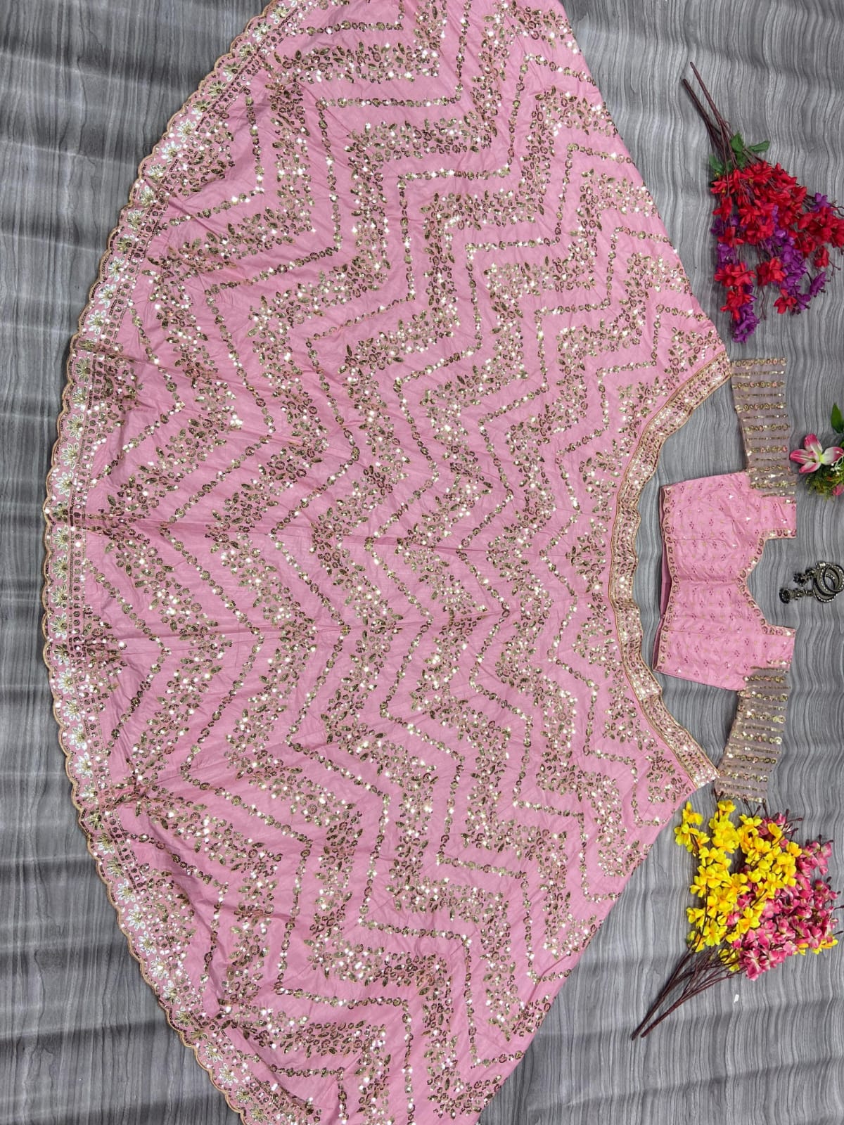 Lehenga : Premium Chinon Silk Embellished With Beautiful Multi Thread And Heavy Sequins Work With Heavy Cancan With Double Inner Covering With Flair 3.5 MTR( Semi Stitched Upto Xxl )