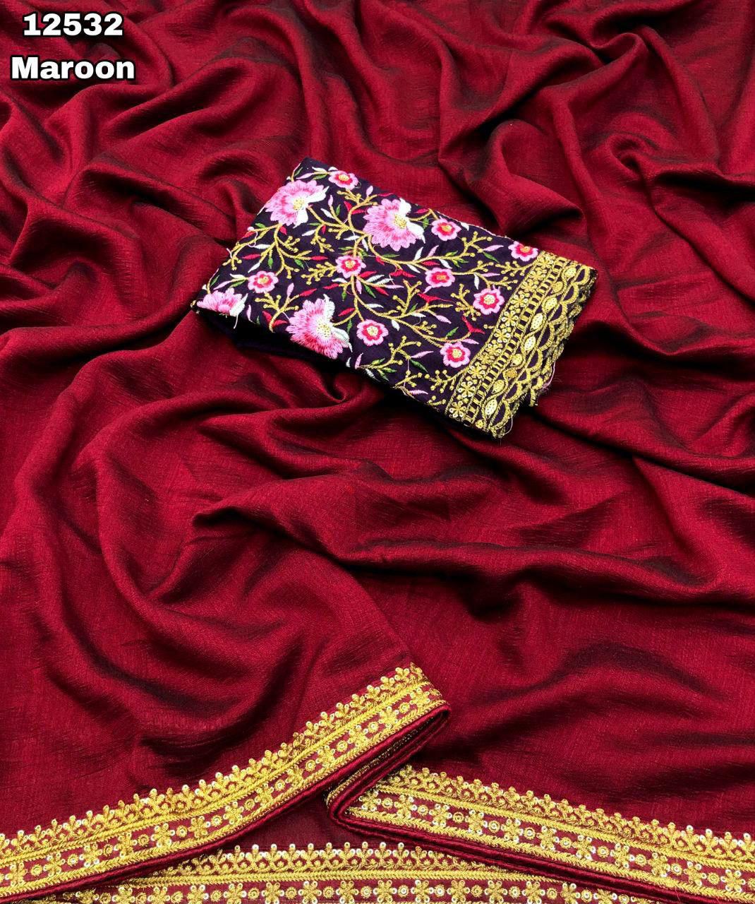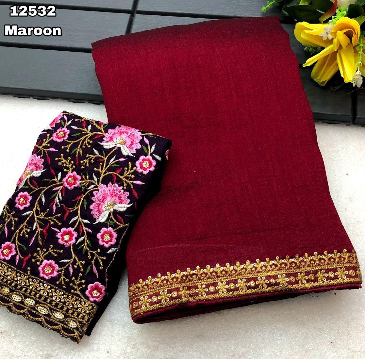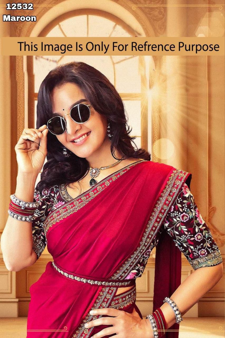 Fabric - Celebrity inspired Vichitra chiffon with embroidery & sequence work saree