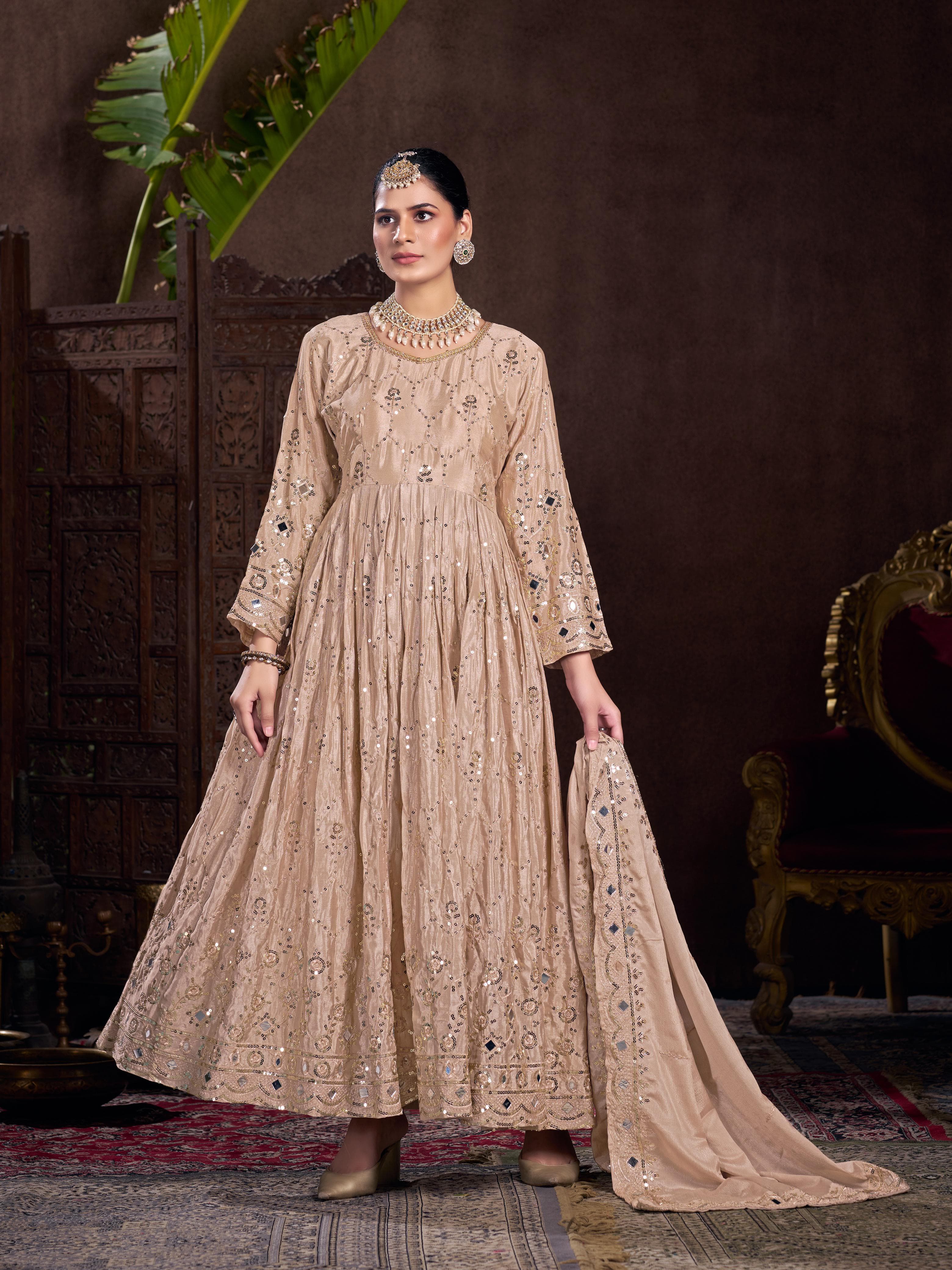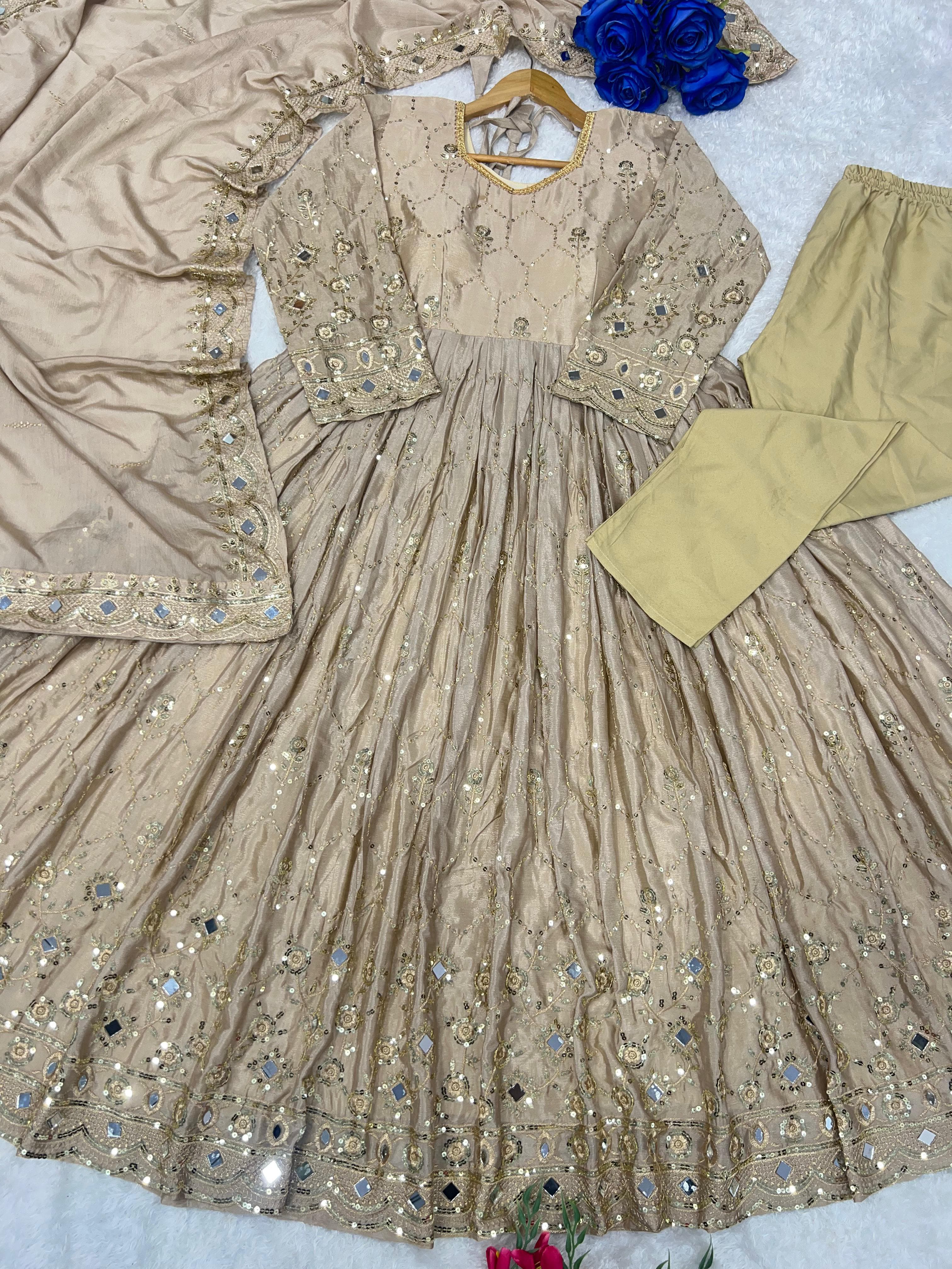 👗 KURTI FABRIC :HAVY FOUX GOARGATE WITH EMBROIDERY WORK AND FULL SLEEVES