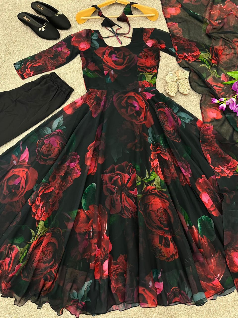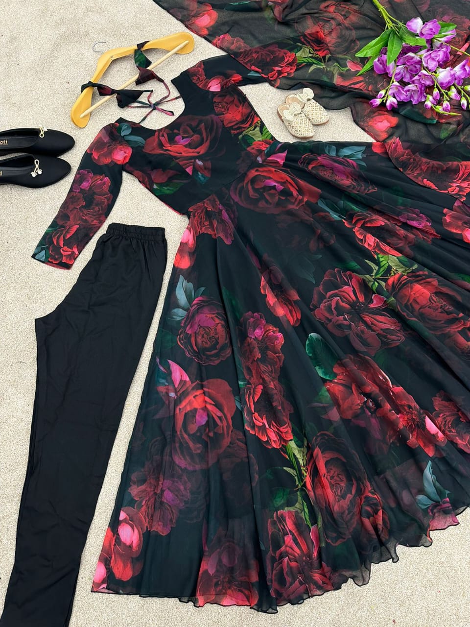 New Anarkali Faux Georgette With Digital Print Work Gown